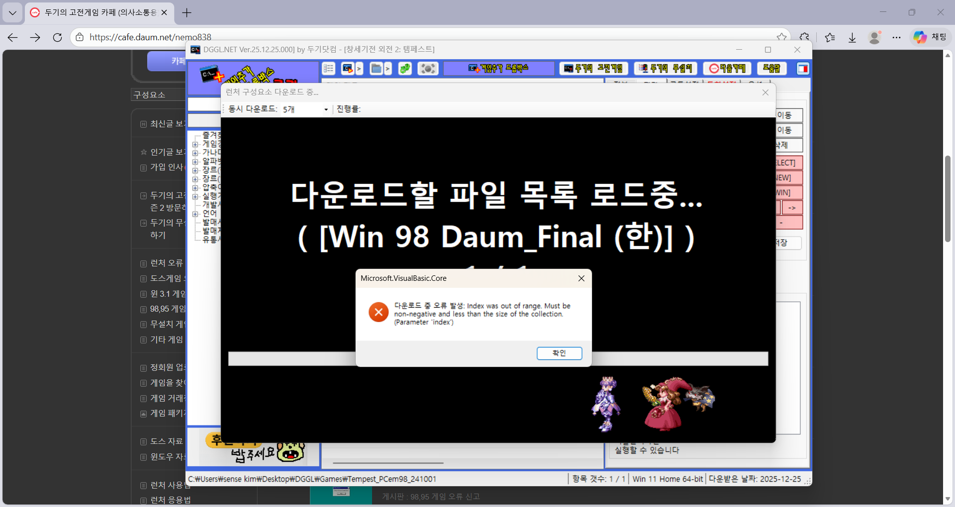 오류 현상: 템페스트2 새로 다운 중 구성요소 다운 오류로 실행 안됩니다