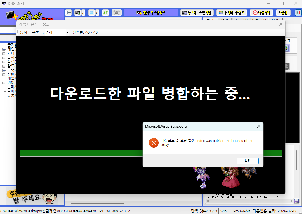 오류 현상: index was outside the bounds of the array 오류뜨면서 스샷 화면 처럼 병합중에 오류가 난뒤 종료후 다시 실행하면 2번째 스샷처럼 저상태로 아무것도 안됩니다 계속 누르면 저대로 아예 뻗어서 강제 종료 시켜야 합니다.