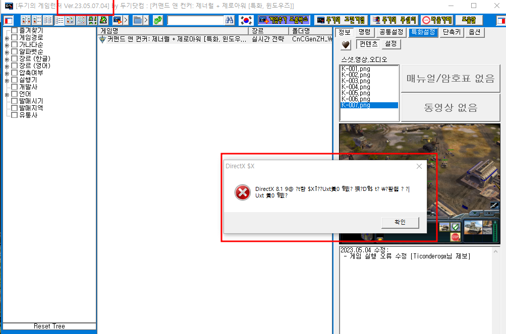 오류 현상: 실행하면 다이렉트 X 관련인듯한데 스샷 첨부합니다.