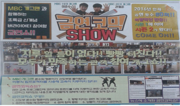 학생들이 학교생활을 건강하고 즐겁게 보낼 수 있도록 금연 및 폭력예방 개그 공연을