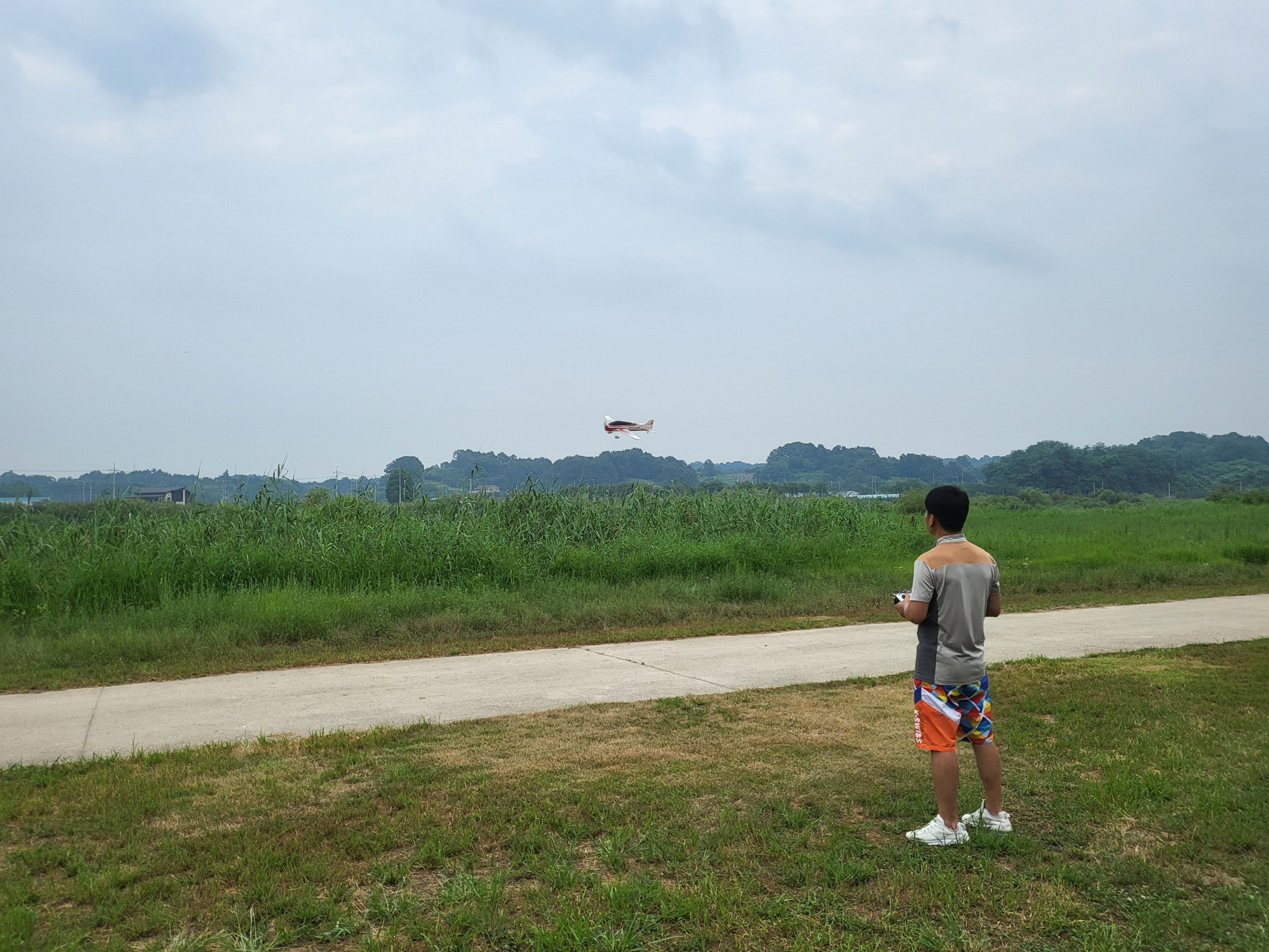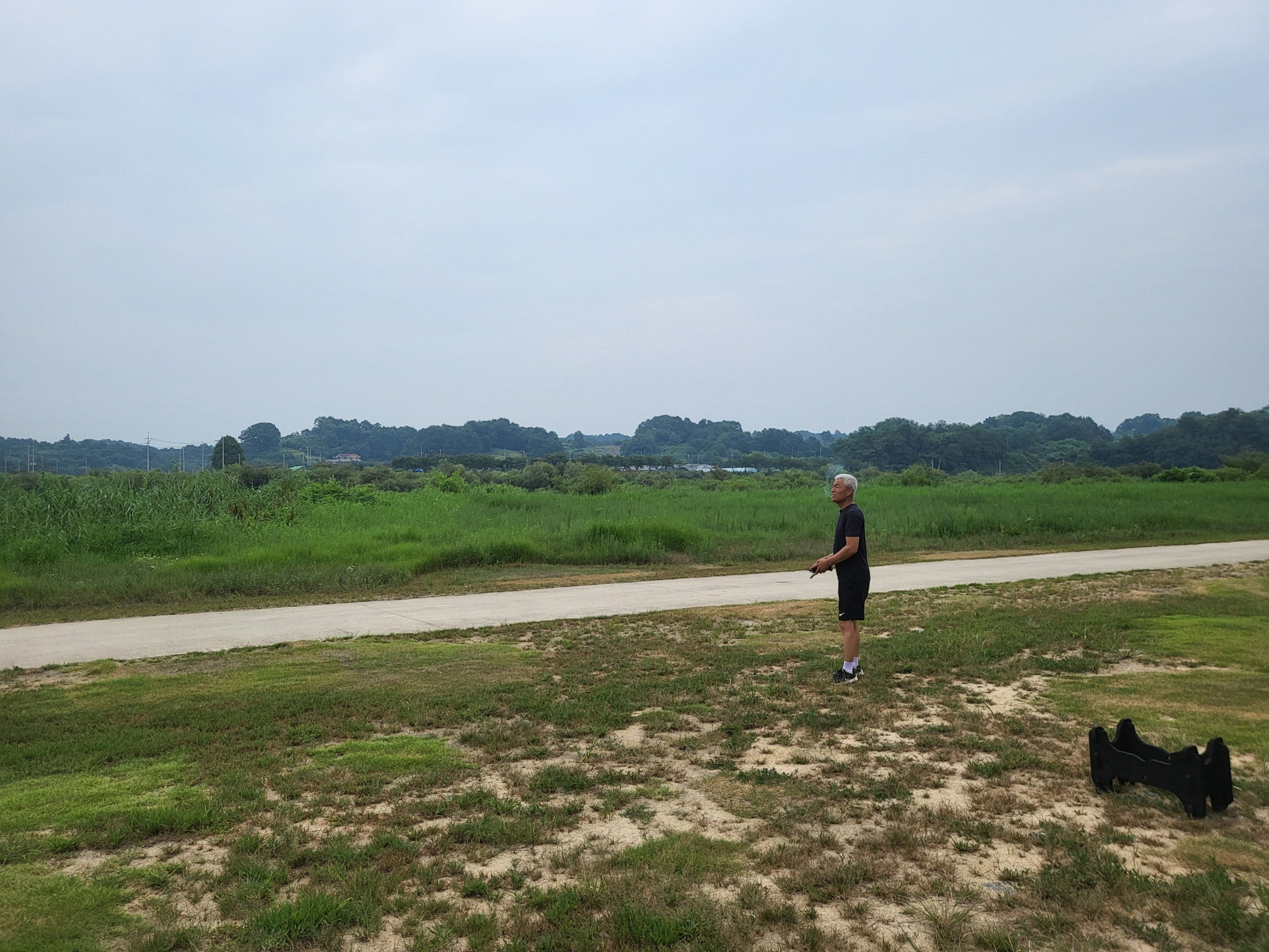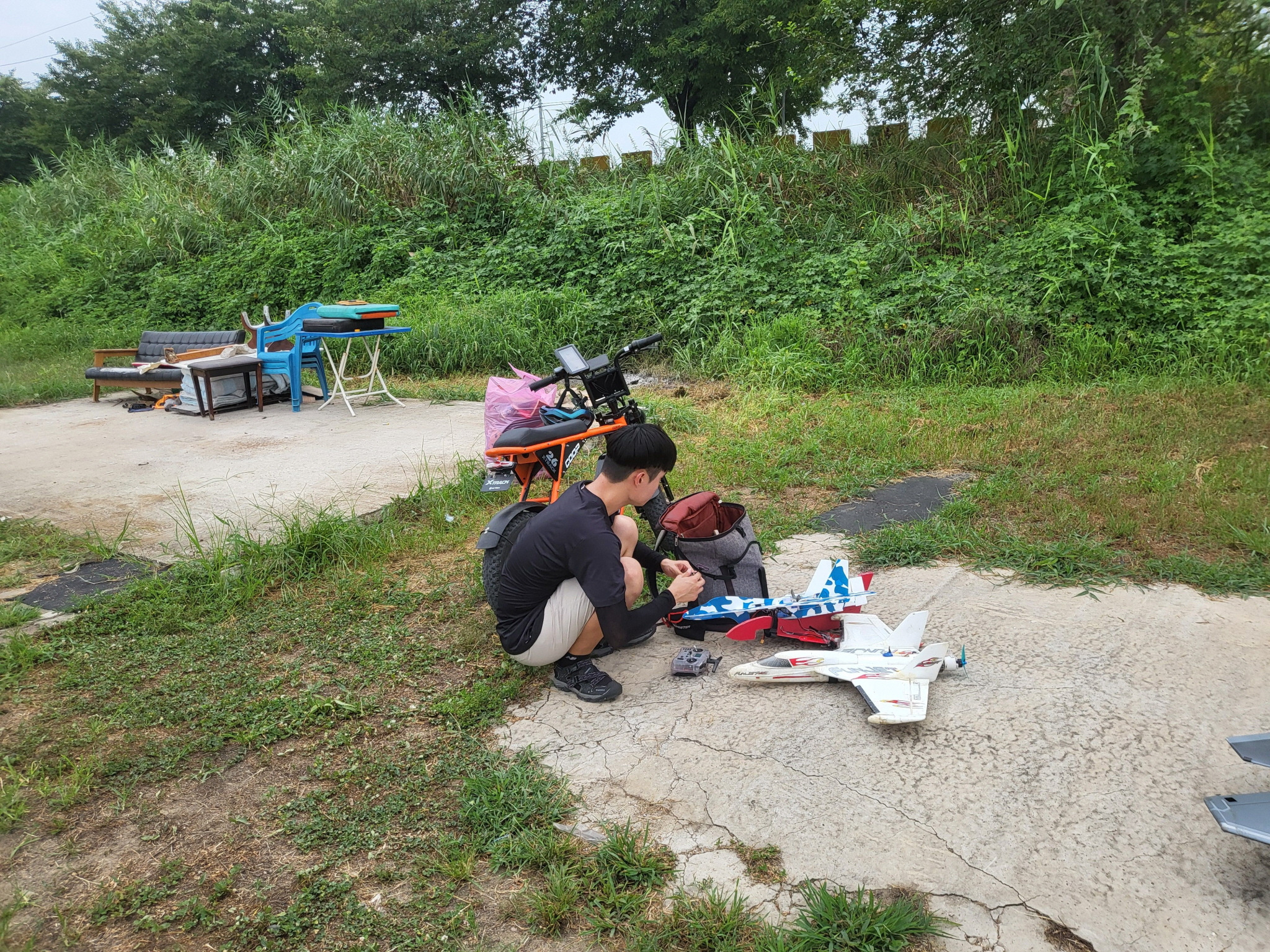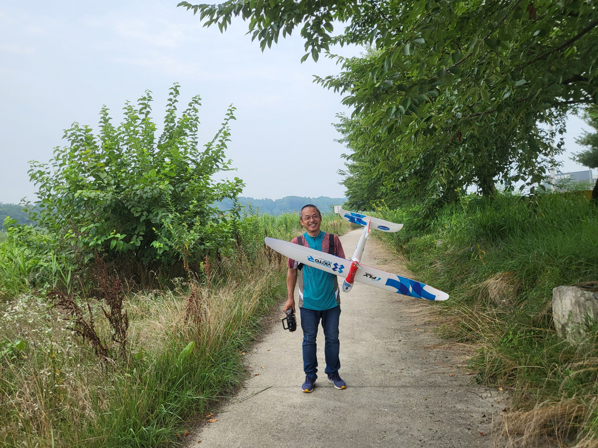 비행기도 날렸는데 잘 날리시다가 가로수쪽으로 비행하여 가로수에 추락했습니다.