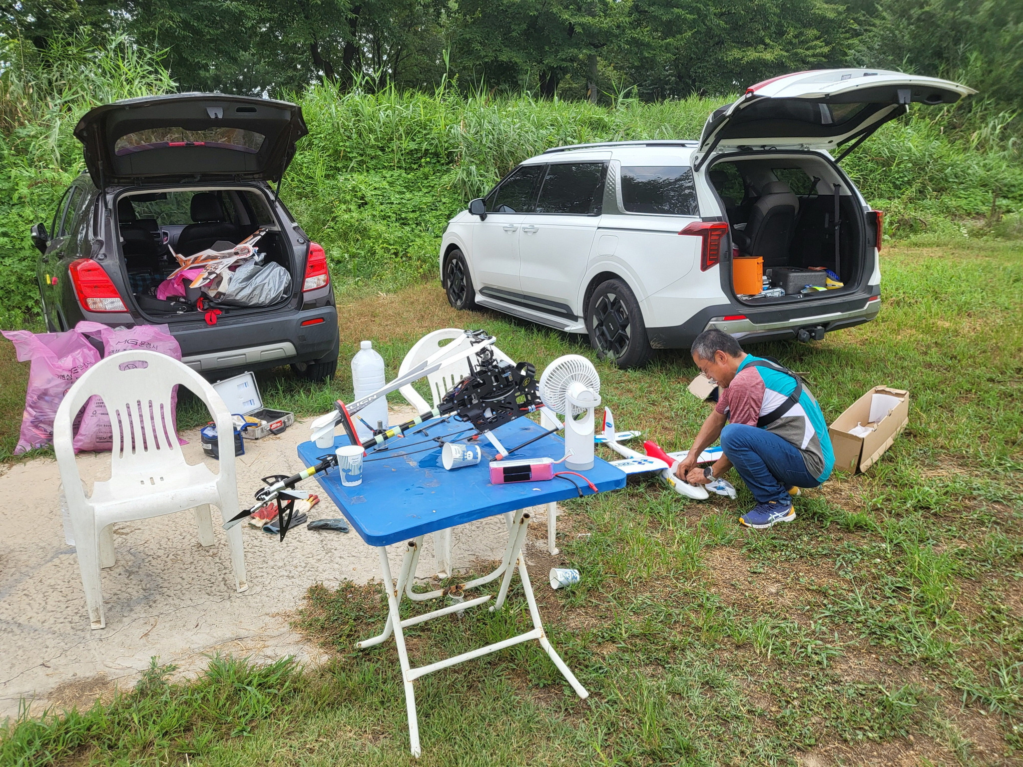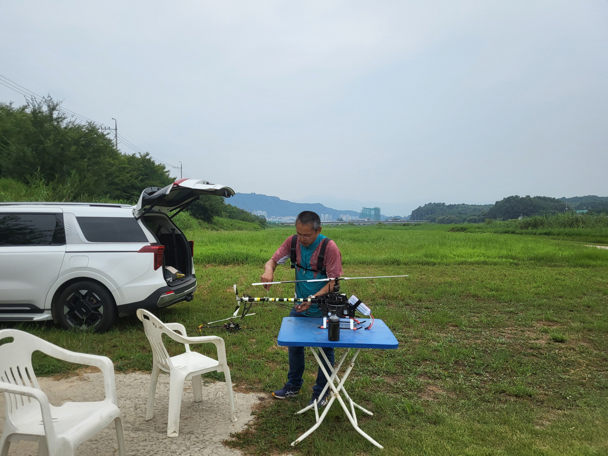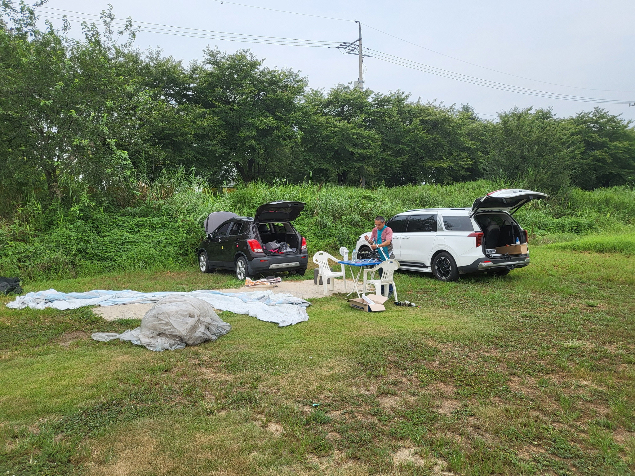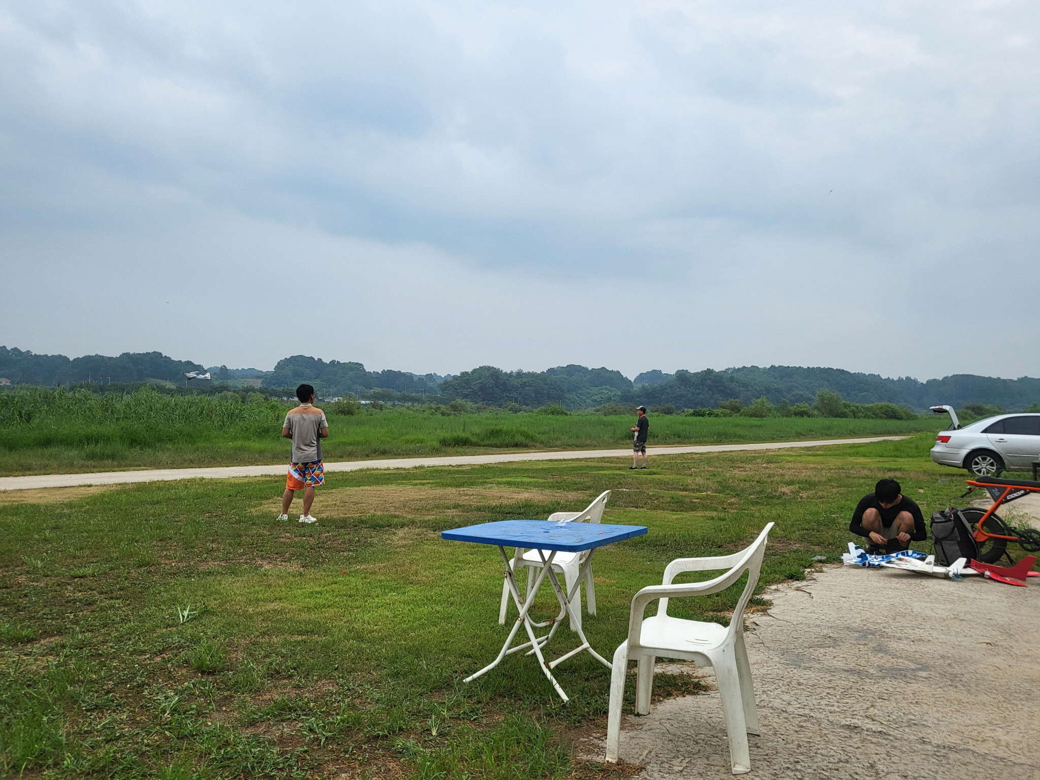 비행기도 날렸는데 잘 날리시다가 가로수쪽으로 비행하여 가로수에 추락했습니다.