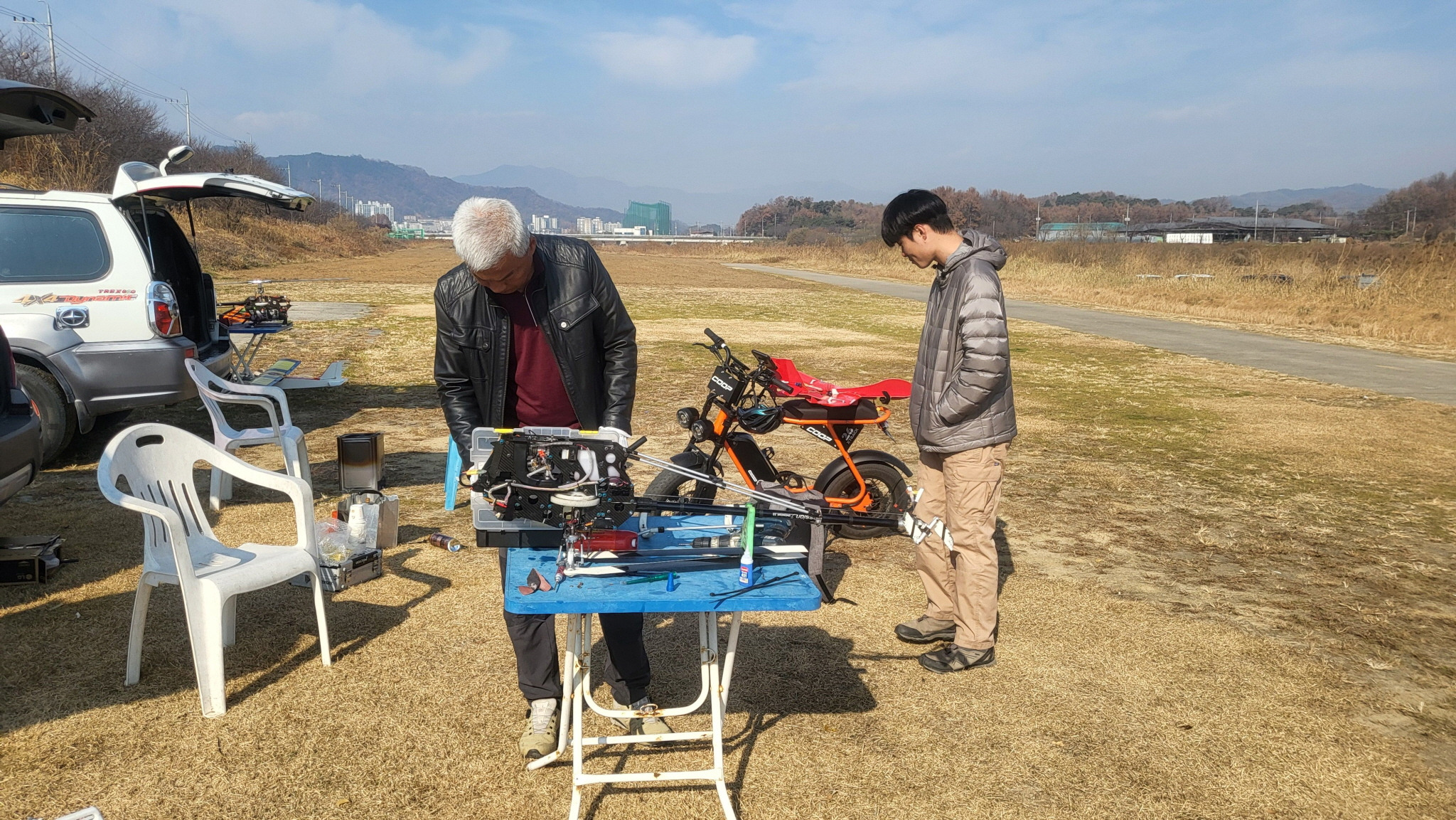 오후 늦게 지나가던 산책하시는 여성분들이 내려오셔서 레이싱드론에 관심을 보이셨는데 취미로 하실지...
