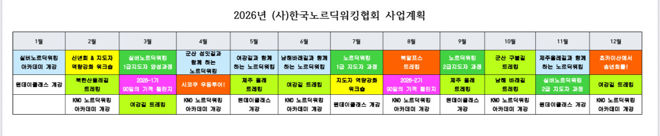 2026년 병오년은 한국노르딕워킹협회의 내실을 탄탄히 다지는 해로 정했습니다.