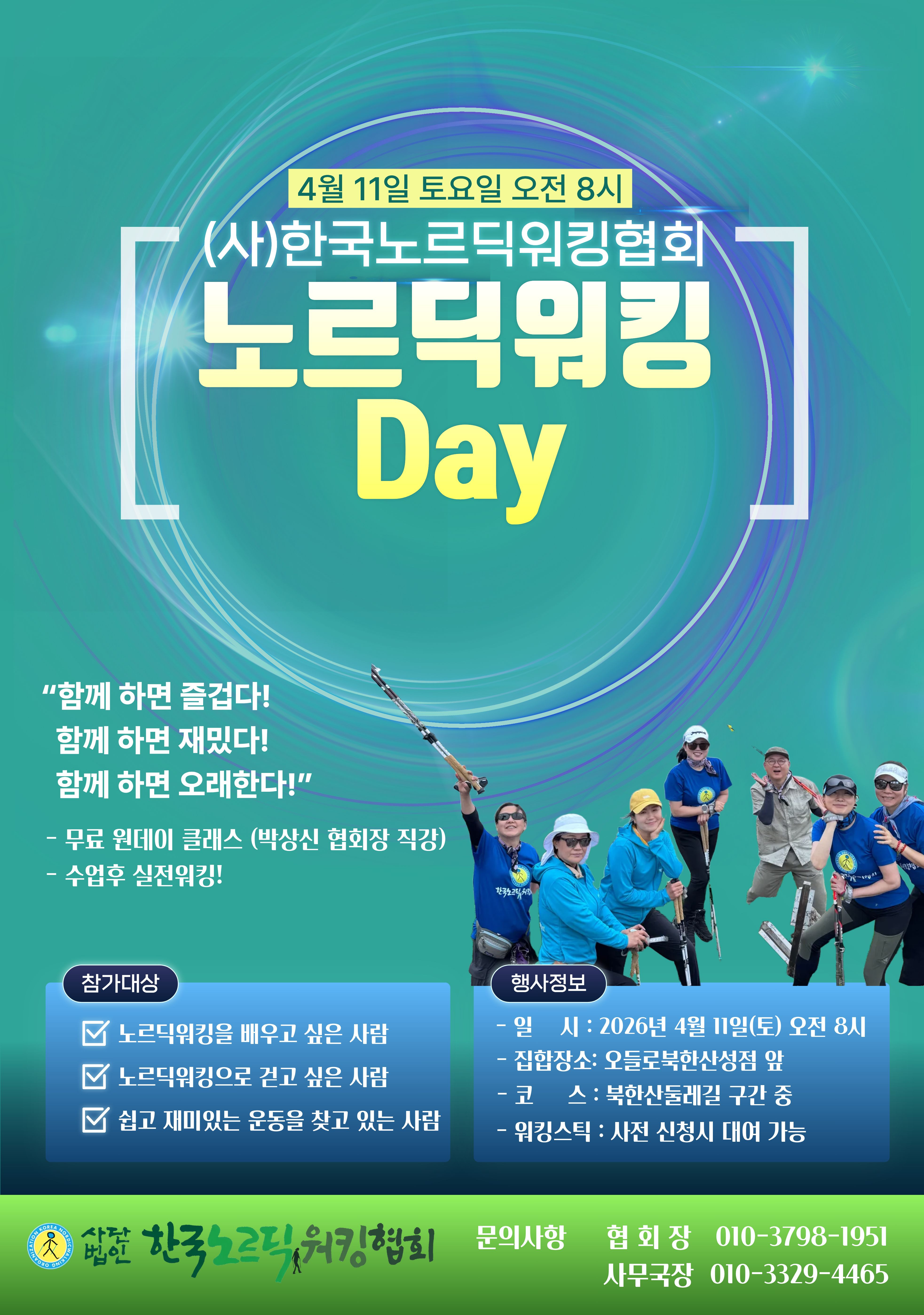한국노르딕워킹협회 코치들과 함께 북한산둘레길도 걸어보시기 바랍니다.