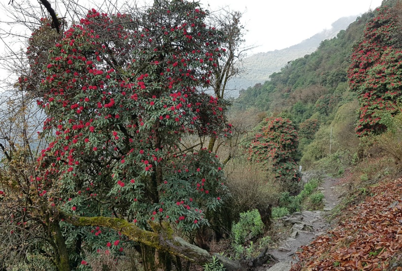 제8일 4월6일 | 남 루 리 로 사마가온 | 트레킹 8 시간 | 07:30 전 일 | -람루(Lamru) 2.660m. -리(Lhi 2.900m)-히난(Hinan)- 로(Lo 3.300m)-시엘라-사마가온(Sama Gaon 3.530m)