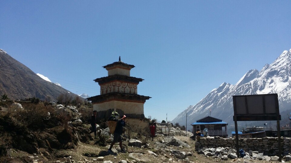 제6일 4월4일 | 자 갓 필 림 로과 뎅 | 트레킹 7 시간 | 08:30 전 일 | -도반-라우리-자갓-세르리디벳-필림(philim 1698m)-뎅(Deng 1920m) -히말출리(7893m영봉이 나타나며 히말출리로 가는 고르카히말과 가네쉬히말로 갈라지는 협곡이 있고 이곳이 좁은 협곡을 형성 하고 있다.