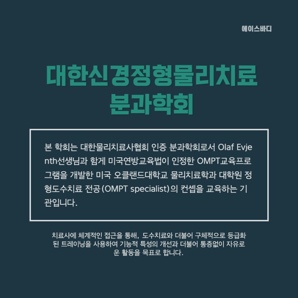 => 대한신경정형물리치료학회(N-OMPT)