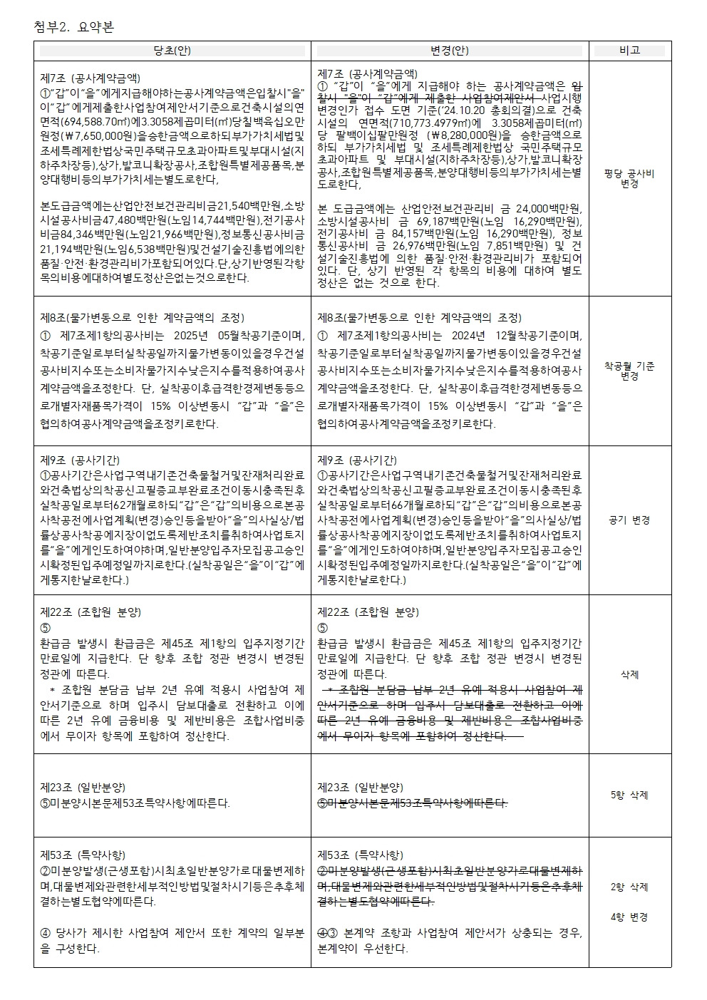 ①물가상승률을 반영한 공사비 조정