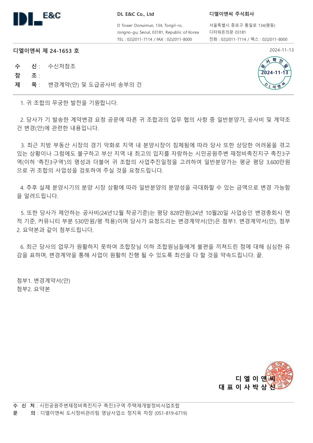 첨부1 은 전체 계약서이므로 첨부2내용을 반영되었고 나머지는 기존과 동일합니다.