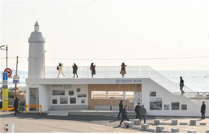 먼저 해운대구청의 요청으로 청사포 마을버스정류장을 리모델링했다.‘청사포 감성버스정류장’이란 이름으로 2020년 1월말 준공했다. 청사포의 옛 모습과 현재 모습을 비교해 볼 수 있는 ‘푸른 모래 전시관’, ‘포토존’, ‘등대 전망대’, ‘쉼터 공간’을 설치해 낡은 버스정류장을 산뜻하게 탈바꿈시켰다. 앞으로 청사포의 또 다른 관광명소가 될 것으로 기대한다.
