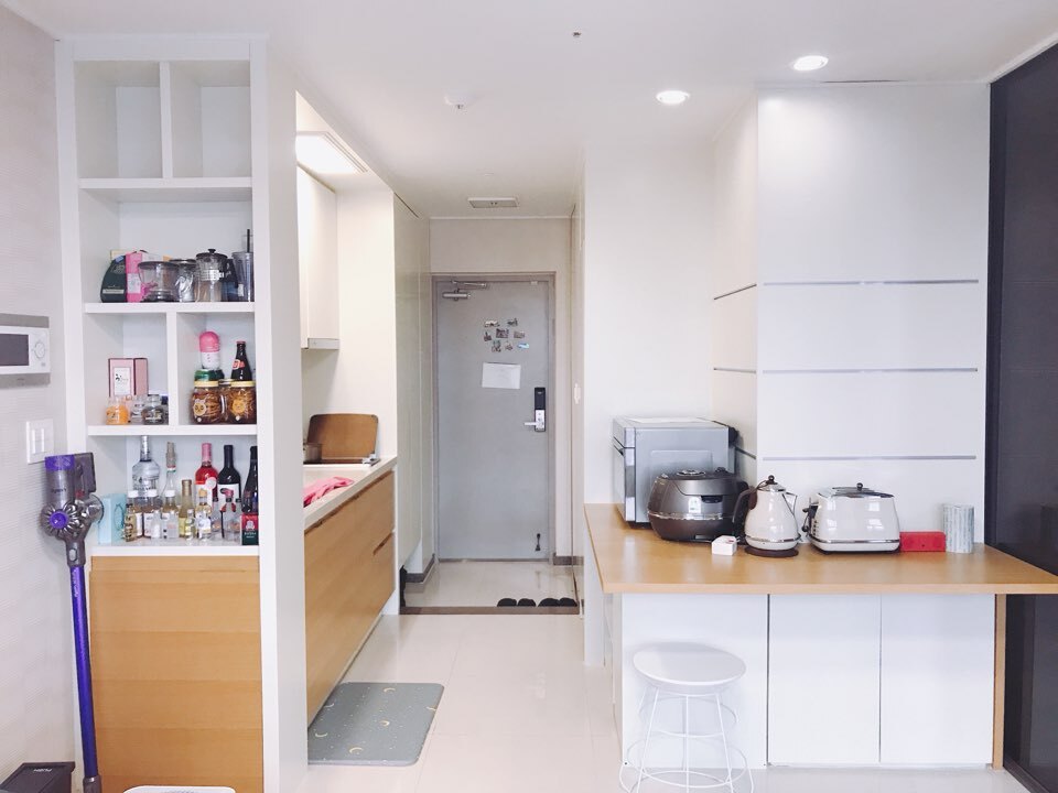 ㄱ개방감을 극대화 하여 큰수납장, 하부 서랍장 등르 설치하여
