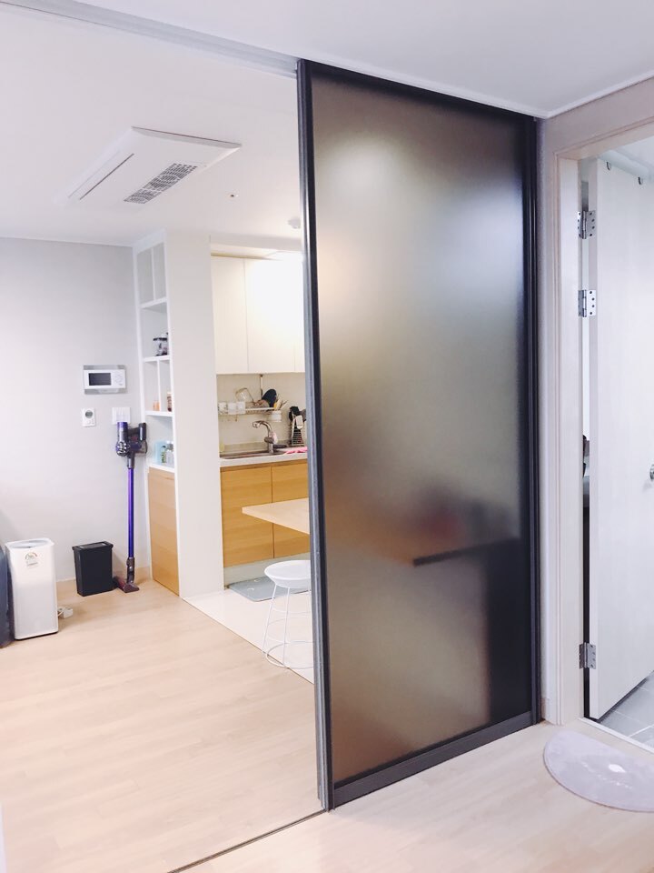 슬라이딩 도어를 설치하여 1.5룸의 쾌적한 공간으로