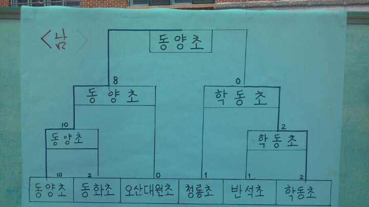 남초부 1위 동양초, 2위 학동초, 3위 오산대원초, 청룡초