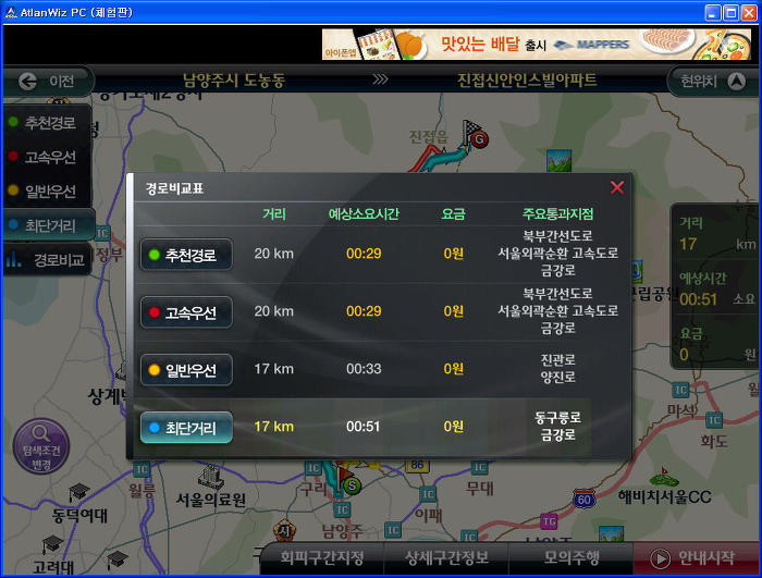 정말 아틀란을 다시 보게 되네요. 이번 경로 비교를 통해서 맵피는 차기 내비 구매 대상에서 제외될 것 같습니다. 지니는 아직 경험해보지 못한 관계로 판단이 유보되는군요.