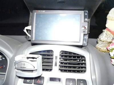 데시보드 위에 구멍을 하나 뚫어고정, 다시는 떨어지지 않게 흔들림은 되도록 적게 하였습니다.