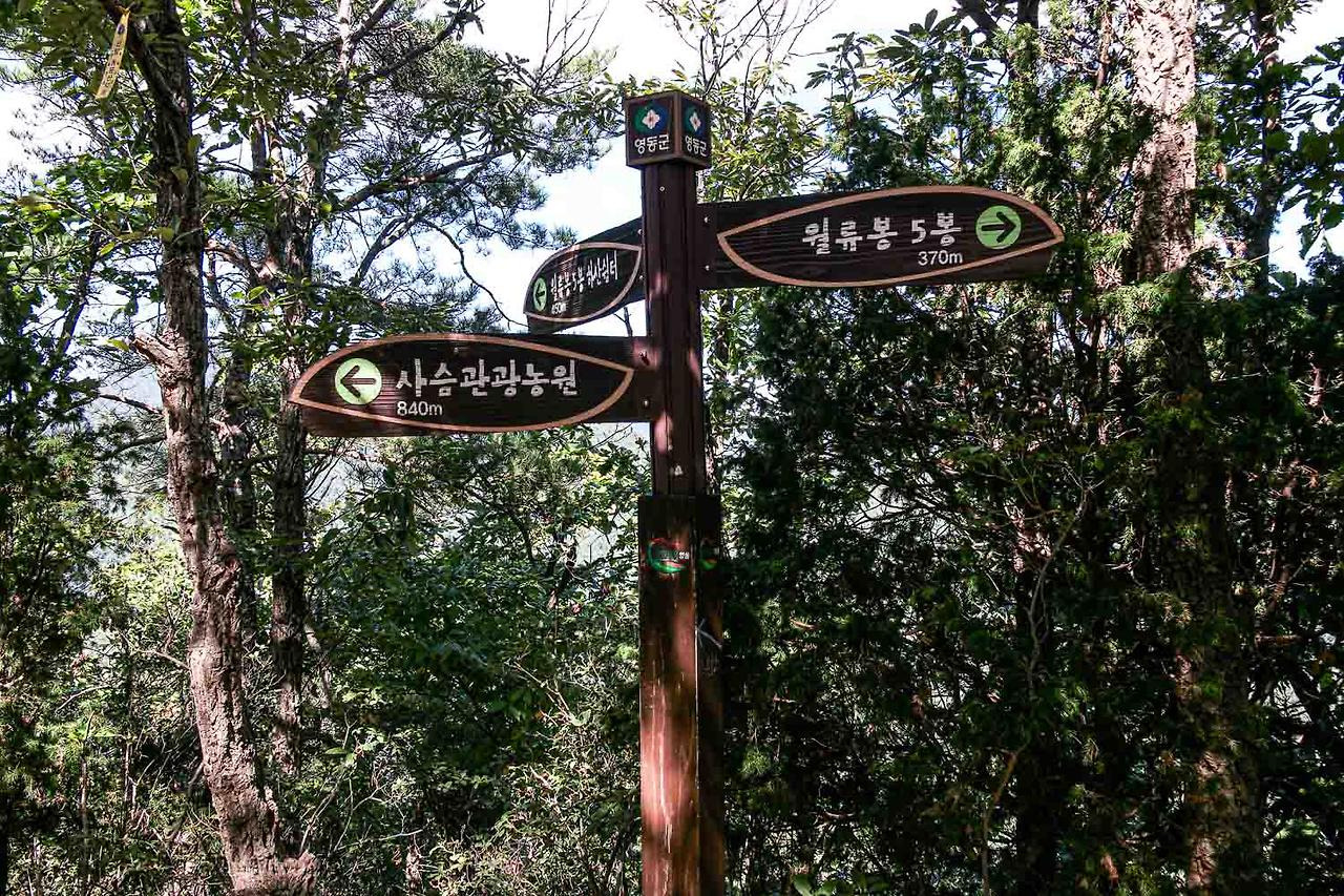 A조주차장-월류봉1.2.3.4.5봉-전망대-왕산왕복-둘레길-반야사-주차장13.5km5시간