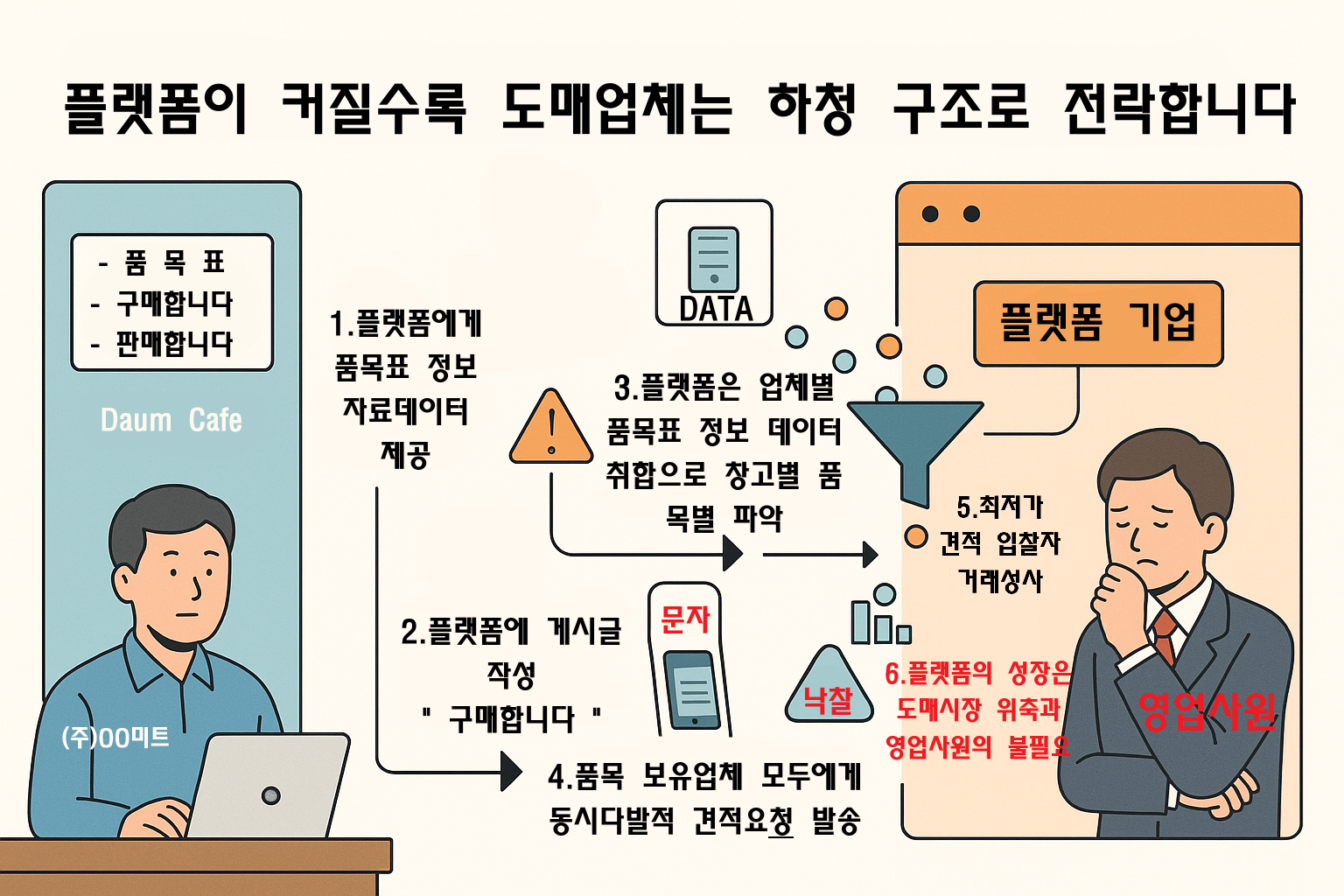 우리의 수입육 유통시장은 플랫폼 중심 구조가 커질수록, 도매시장은 하청으로 전락합니다.