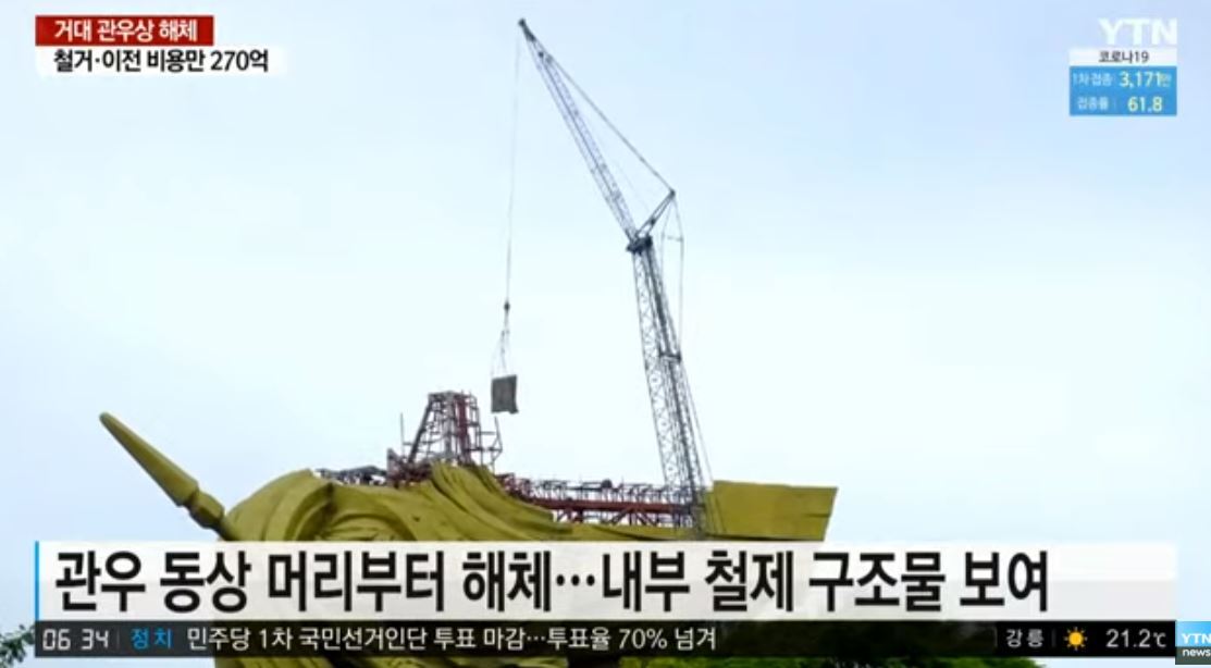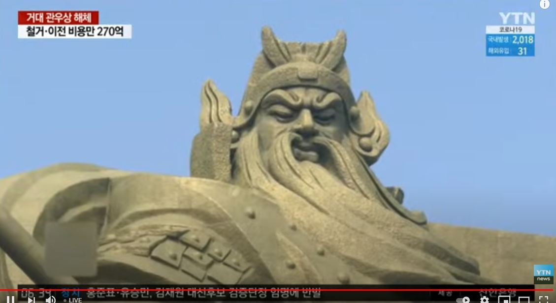 삼국지의 형주였던 징저우에 설치된 57미터 관우상을 철거하게 되었군요.