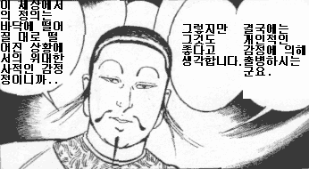 복사복사복사~ ↓ 관리인이 제일 마음에 들어하는 장면. 조조와 사마의의 부드러운 회화. ...그런 부드러운 상황으로 끝날만한 회화입니까 이거?! 소노다 조조는 곧바로 '목을 쳐라!', '기다려주세요 폐하!' - 같은 장면이 나올것같은 사람입니다만.. ↓ 1권으로 돌아가서, 보면 나오는, 소노다씨의 메시지. 내가 이 삼국지를 쓰기 시작한것은 1978년, 지금으로부터 17년의 일이었다. 작품의 전례가 일본에 없는것은 아니었지만, 옛 중국의 풍속에 대해서는 자료도 적어서 곤란에 처했었다.... (중략) 나의 상상력으로, 에잇! 대충 때우자! 라고 하면서 보충하지 않으면 안되는 일도 많았던 일을, 여기서 정직하게 고백해 두지 않으면 안 된다. 아마도 이 근처의 것이라고 생각합니다. 에잇-!!! |