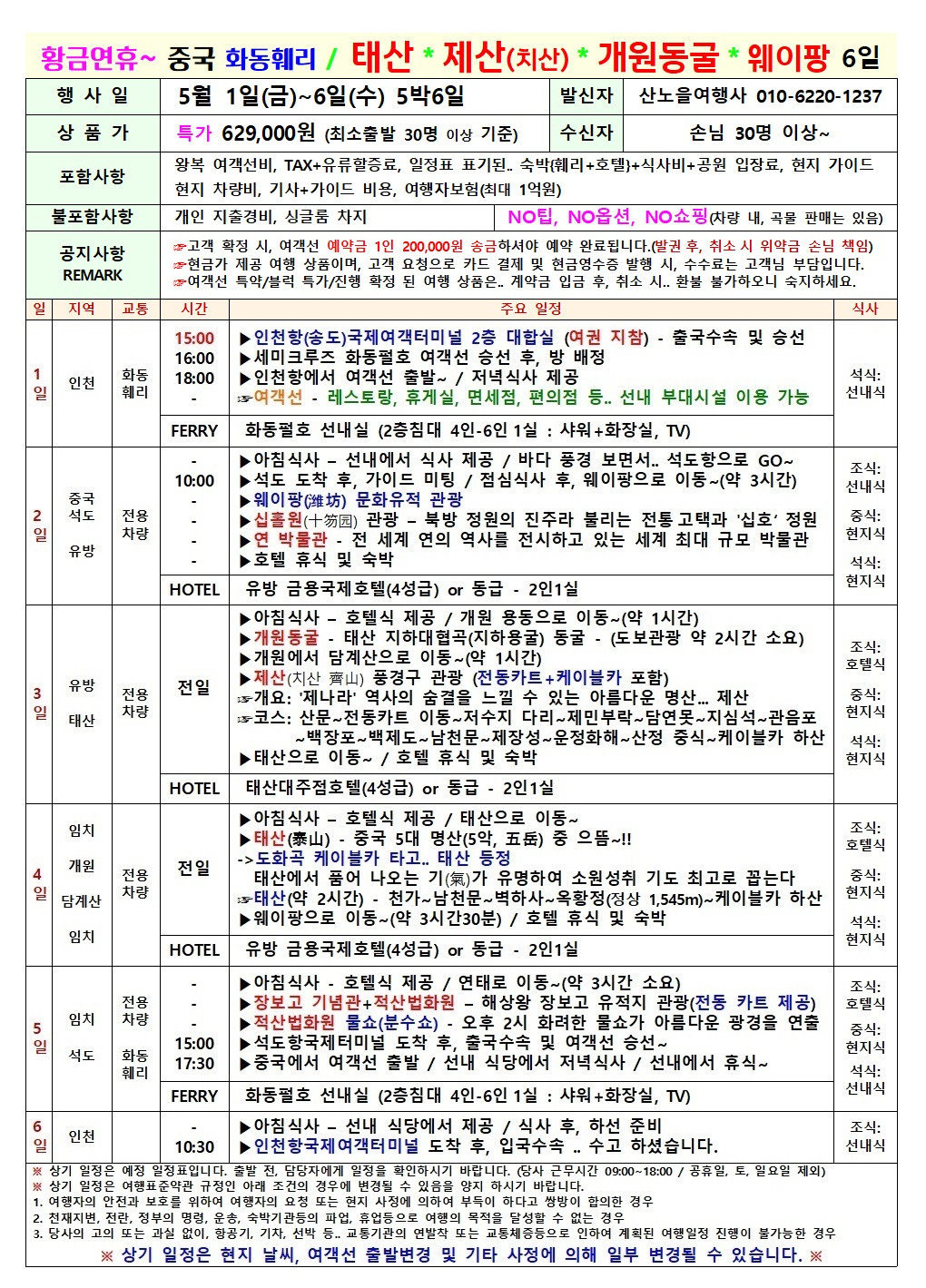 ☆상기 일정은 산노을여행사 해외여행 약관을 적용합니다.