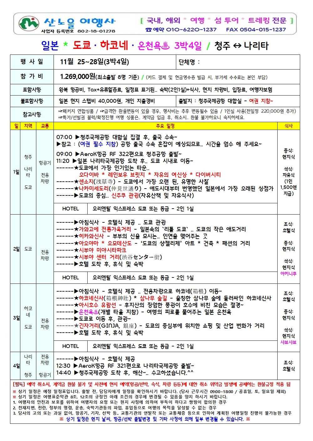 ◎상품가 : 1,269,000원 (세부내역 일정표 참조)