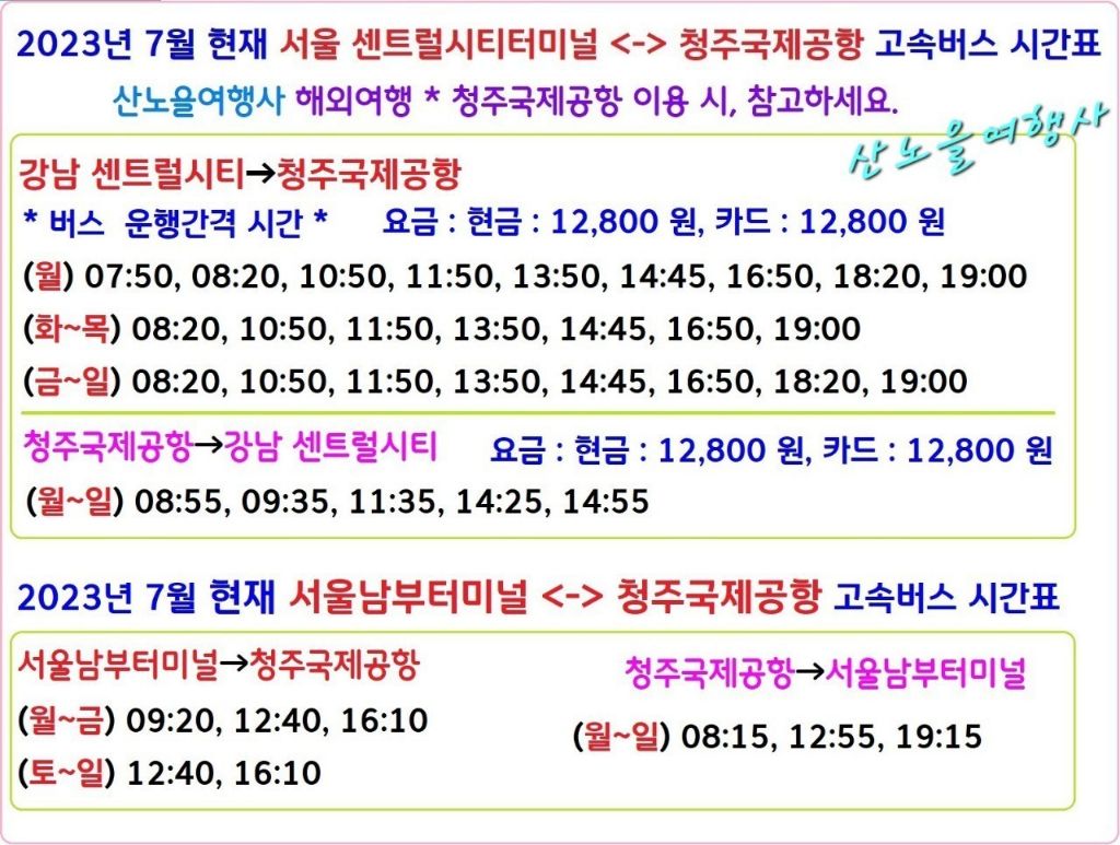 서울↔청주공항(왕복) 대중교통 이용 편리합니다.