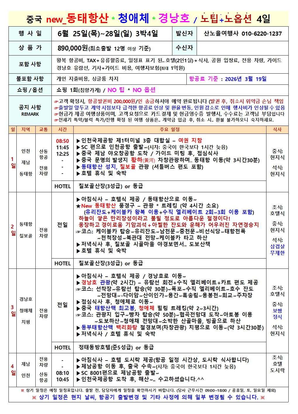 ♻️상품가: 890,000원 (세부내역 일정표 참조)