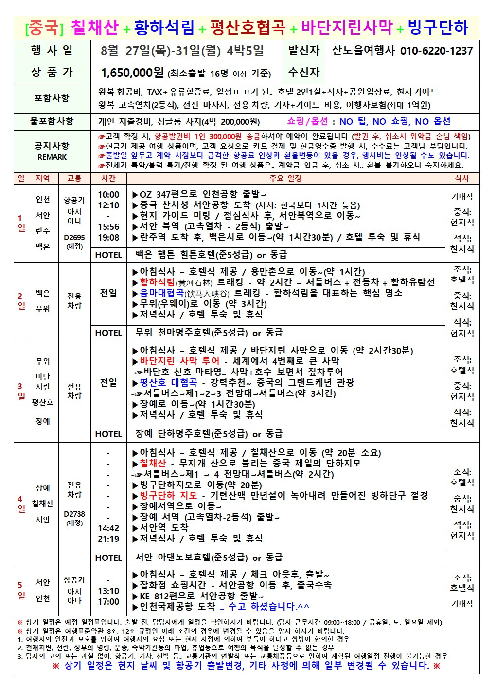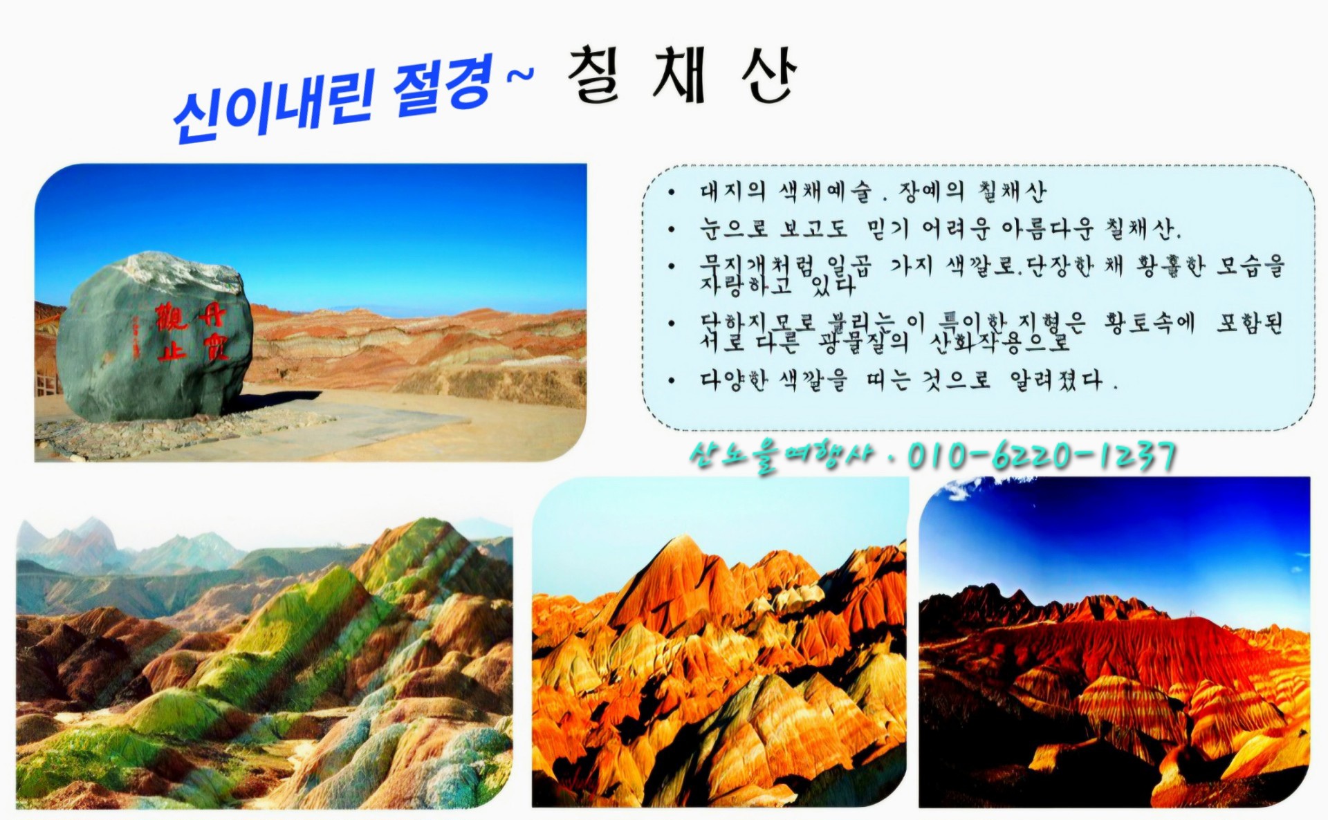#칠채산 #장가계여행 #태산 #산노을여행사 #구채구 #황룡 #호도협 #바단지린 #황하석림 #동태항산