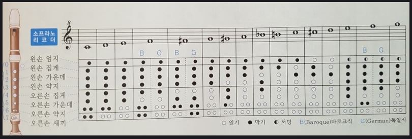 P/S. 파#은 바로크식(B)과 독일식(G) 리코더식이 조금 다릅니다. 여러분들 리코더는 대체로 독일식(G)이 많습니다. 아래 첨부된 운지법 사진 참고