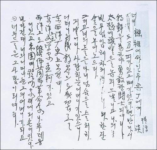 반드시 조선을 위하여 용감한 투사가 되어라.