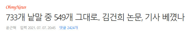 김건희 또 다른 논문, 영문 초록 한 문장 뺀 94% 표절 의혹