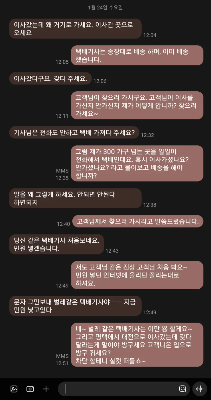 어디다 놓고 가야 하냐고요. 제가 전화 못 받으면 문 앞에 놓고 가시기는 합니다. 그리고 문자도 곧바로 오죠.