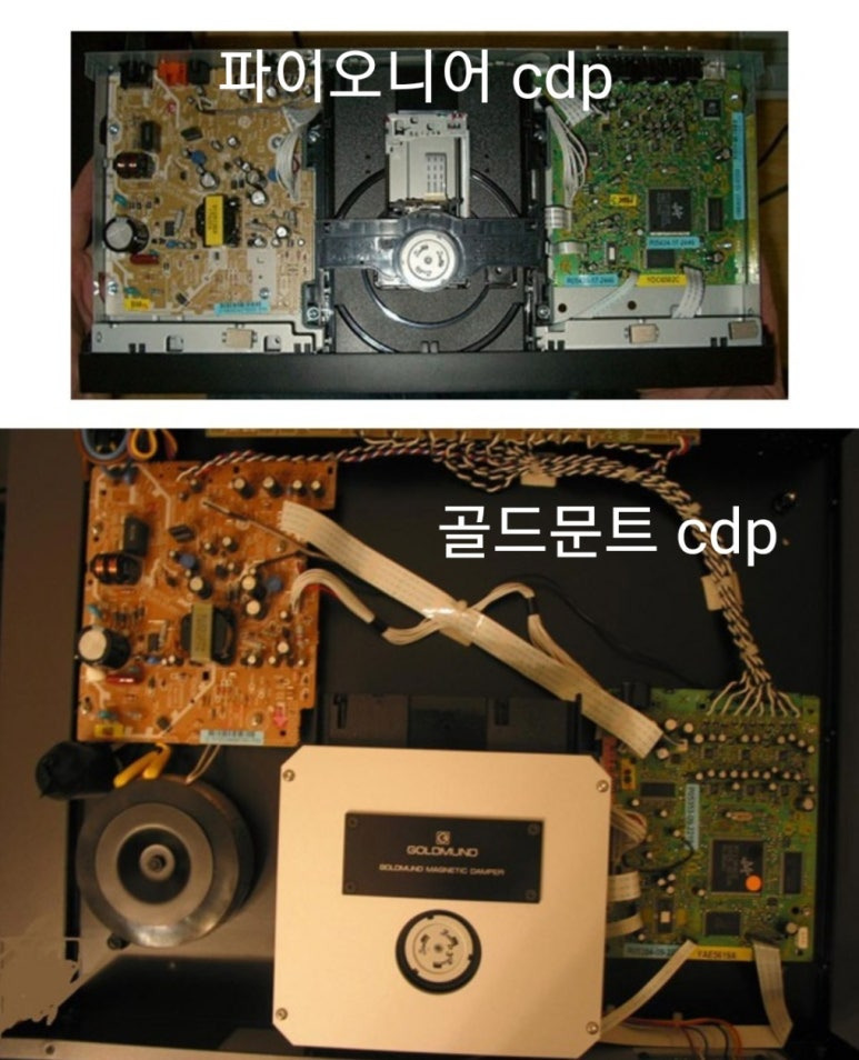 보드두장과 cd 트레이와 광픽업이 있는 기구도 꼭같다 다만 둥근 팽이같은 녀석이 더 있고 골드문트 명패와 알루미늄판이 돋보인다.