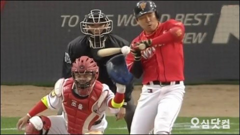 심판에게 맞은 부위까지보여줌 결국 데드볼로 판정 나주환은 1루출루