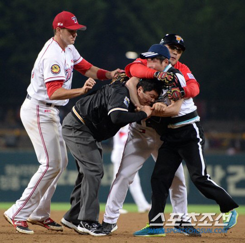 이에 나주환은 맞았다고 주장하며 손목을 부여잡고