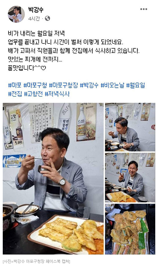 마포구청장이 서울 물난리때 파전먹고 꿀맛이라던 그사람