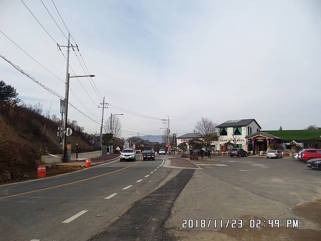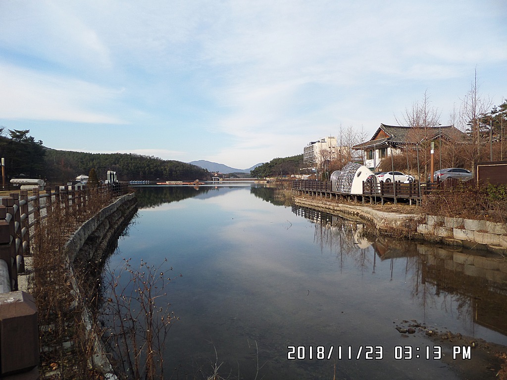 *비득재에서 800m 거리의 고모호수 공원까지 도보 이동.