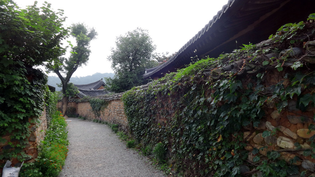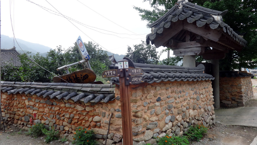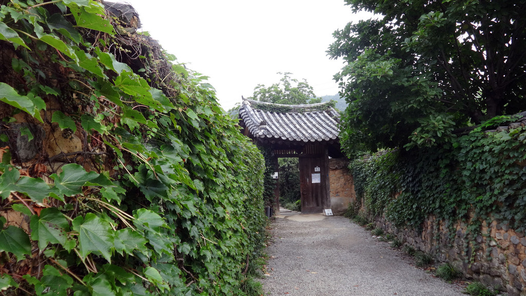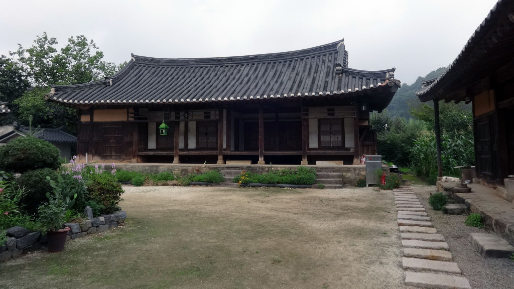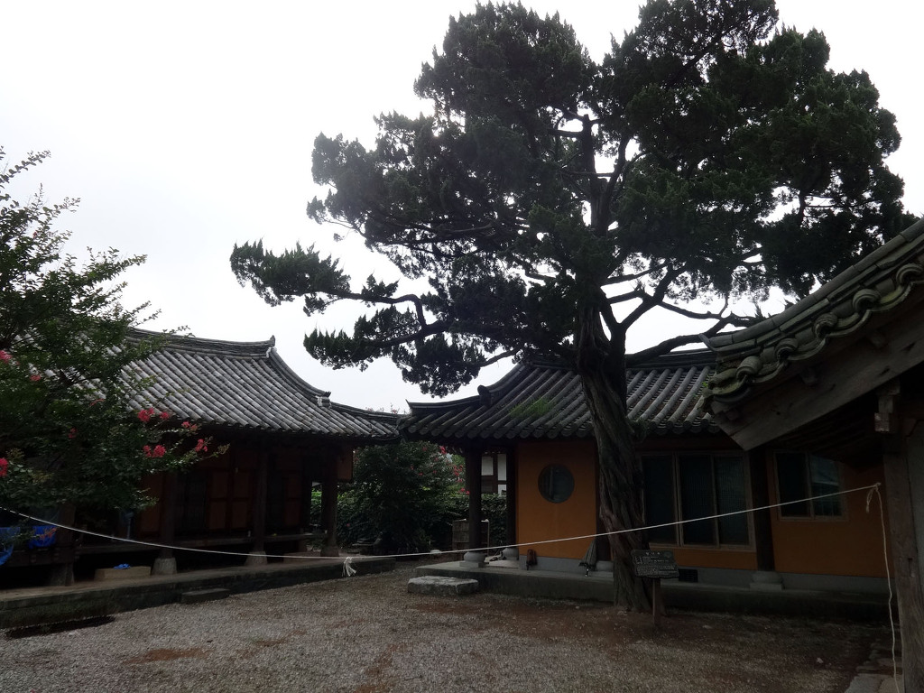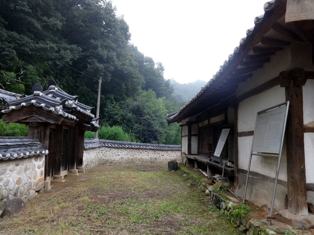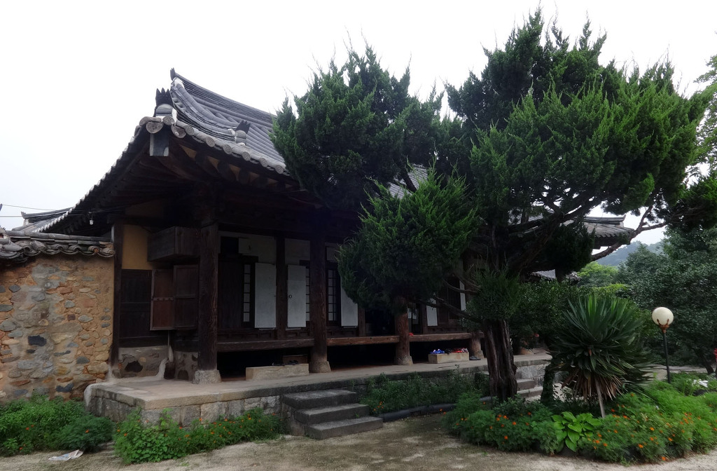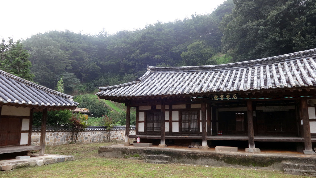 남사예담촌의 상징이 되어버린 X자형 회화나무 골목입구로 들어서면 이씨고가를 만날 수 있습니다. 나지막한 돌담 끝에 있는 대문을 지나면 그 옛날 화려했을 사랑채와 200년이라는 세월이 무색할 정도로 잘 보존되어 있는 안채가 자리하고 있습니다. 사랑채, 익랑채, 곡간채가 안채를 중심으로 ㅁ자로 배치된 가운데, 왼편으로 사당이 있습니다. 집안의 부유함을 말하듯 화려하고 과장된 건축기법이 사용되었지만 그럼에도 아담한 우리네 한옥 특유의 맛이 있는 고가입니다. ◈ 곽종석선생유적-이동서당(尼東書堂) (문화재 자료 제196호)
