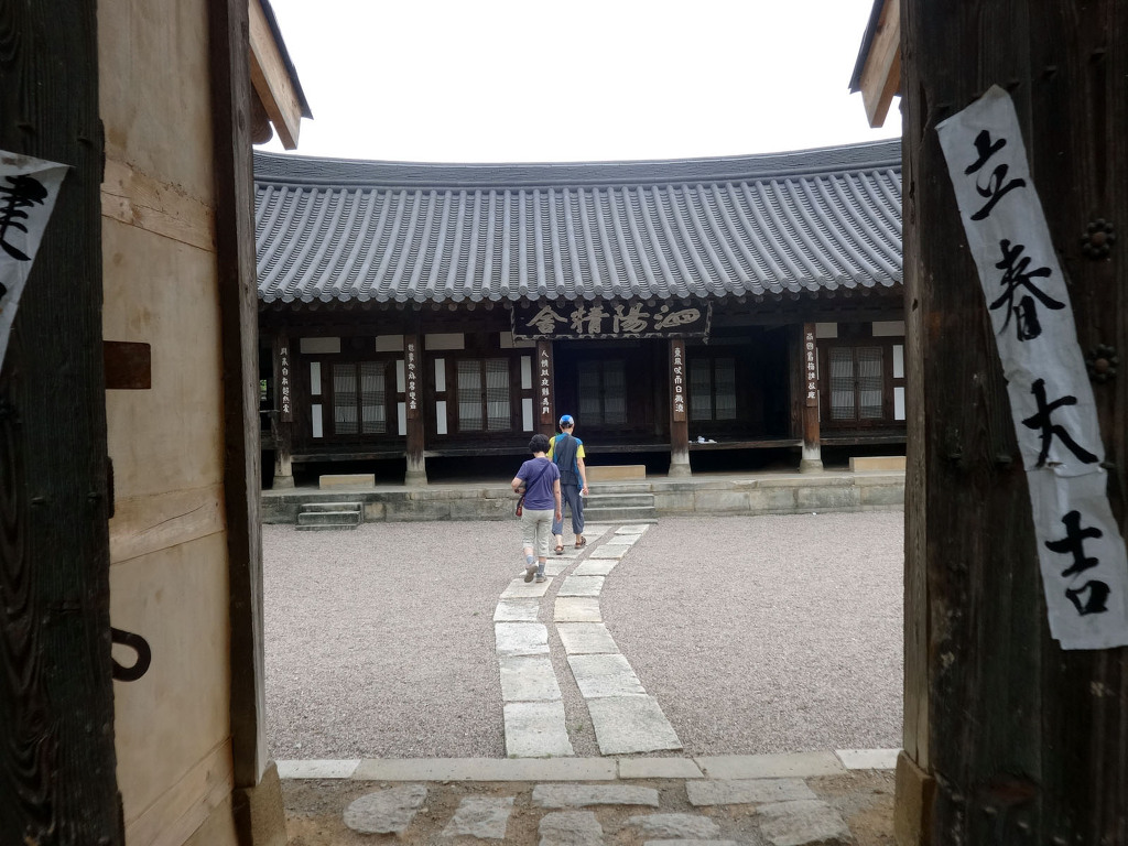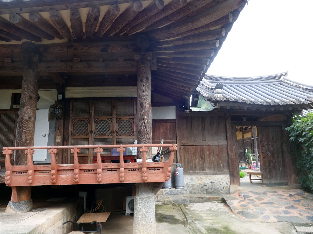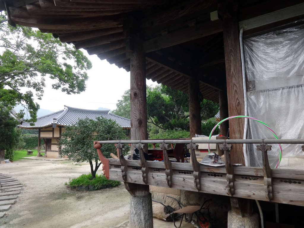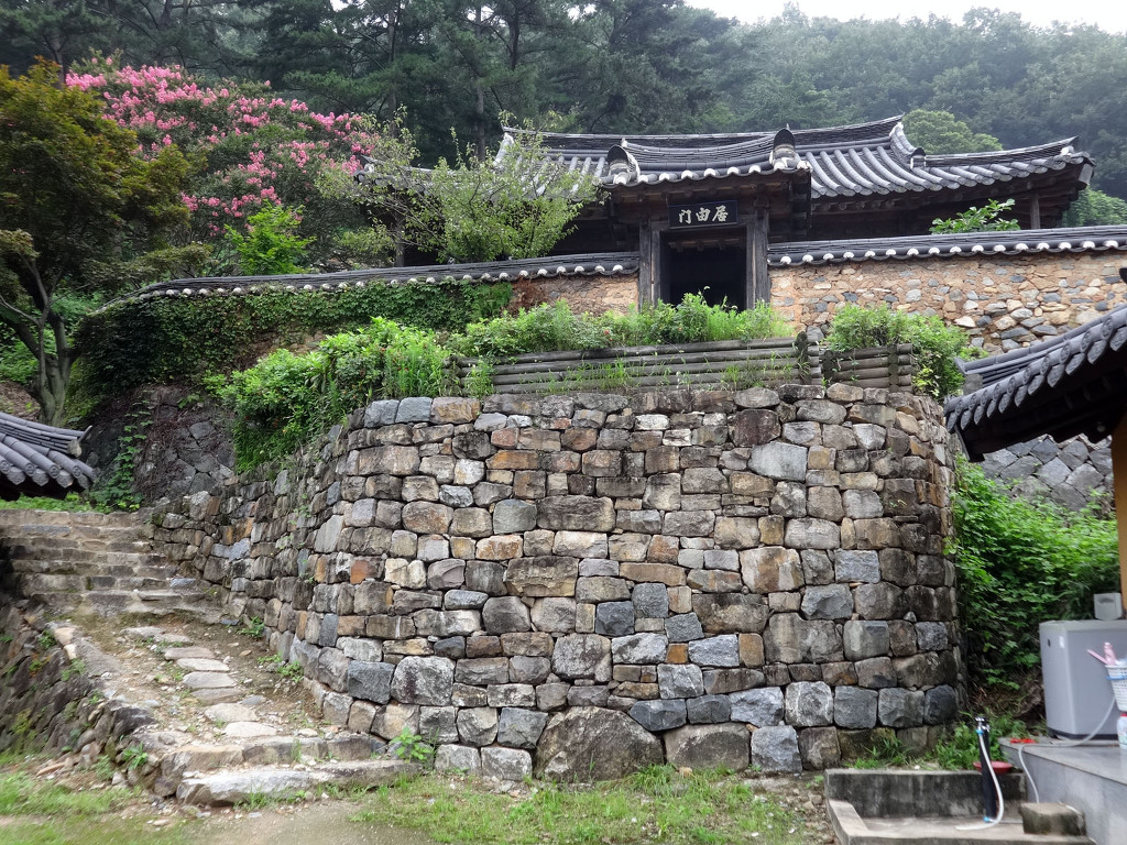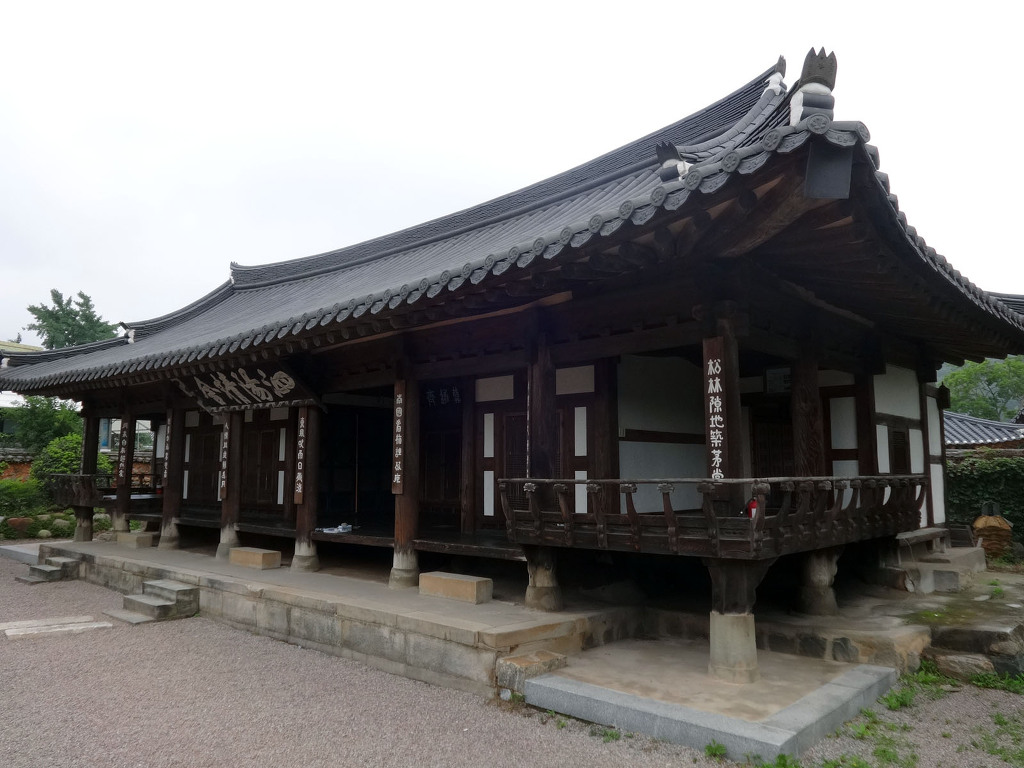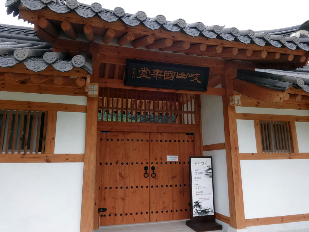 남사예담촌의 상징이 되어버린 X자형 회화나무 골목입구로 들어서면 이씨고가를 만날 수 있습니다. 나지막한 돌담 끝에 있는 대문을 지나면 그 옛날 화려했을 사랑채와 200년이라는 세월이 무색할 정도로 잘 보존되어 있는 안채가 자리하고 있습니다. 사랑채, 익랑채, 곡간채가 안채를 중심으로 ㅁ자로 배치된 가운데, 왼편으로 사당이 있습니다. 집안의 부유함을 말하듯 화려하고 과장된 건축기법이 사용되었지만 그럼에도 아담한 우리네 한옥 특유의 맛이 있는 고가입니다. ◈ 곽종석선생유적-이동서당(尼東書堂) (문화재 자료 제196호)
