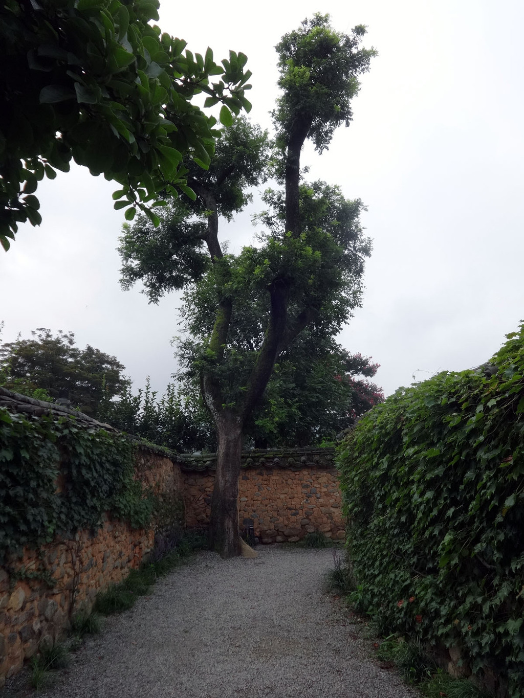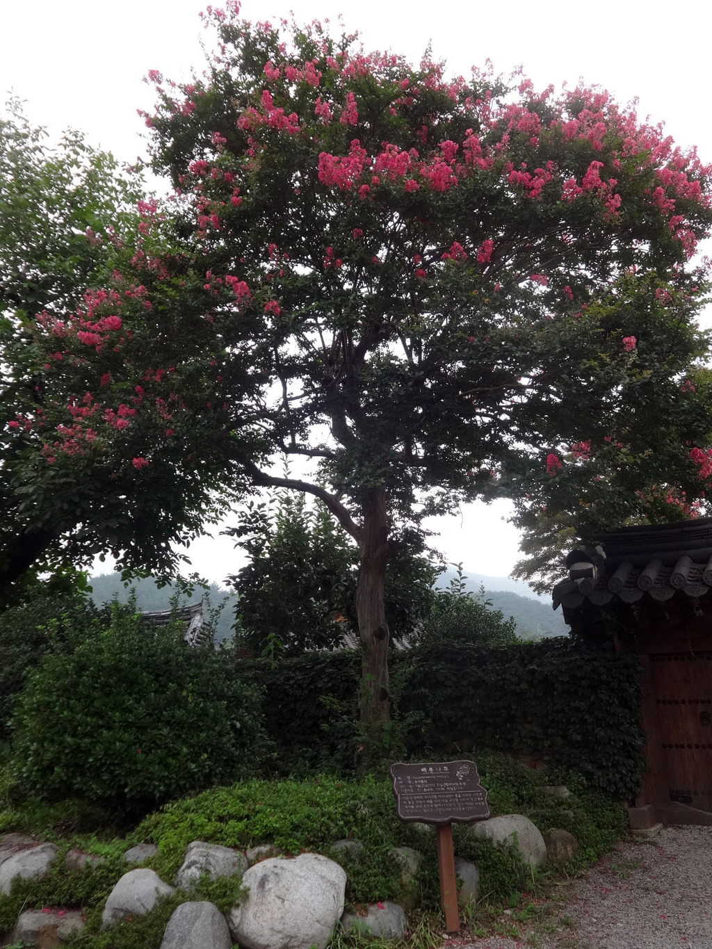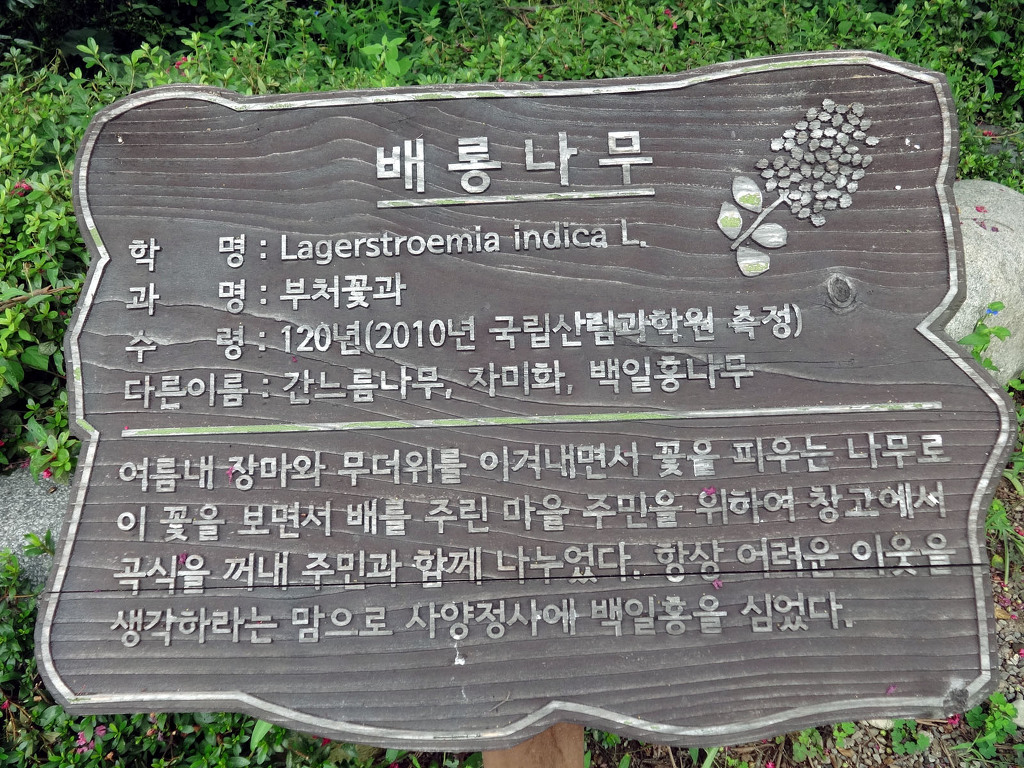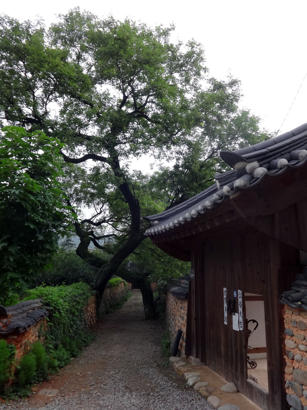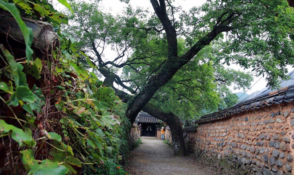 ▲ 300년 회화나무 마을 초입, 李氏古家(이상택 고가)로 가는 입구에 있는 나무로 서로 x자로 몸을 포개고있는 것이 인상적인 나무입니다. 이 나무는 심는 집안에서 훌륭한 인재가 난다고 하는데요. 회화나무의 열매는 천연염색제로 쓰이기도 한답니다.