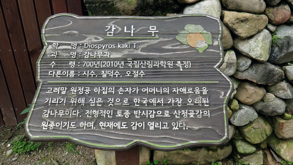 ▲ 600년 된 감나무 세종대왕 때 유명한 황희정승 다음으로 영의정을 지낸 하연 대감이 심은 감나무입니다.보통 일반적으로 감나무는 400년도 채 못 산다고 합니다. 그런데 이 감나무는 600살이나 넘게 살아오고 있습니다. 이렇게 오랫동안 살아온 이유는 일단 여기 이곳의 땅이 기름진 땅이 아닌 자갈밭입니다. 결코 편안하고 풍족한 안락한 땅이 아니라는 뜻입니다. 그리고 위 사진에 볼 수 있듯이 나무에 큰 구멍이 나있습니다. 질병과 고통을 스스로 이겨내었다는 뜻입니다. 스스로 시련을 견뎌냈기 때문에 척박한 땅에서도 살아올 수 있었던 것입니다.지금도 이 감나무에서 감이 열린답니다