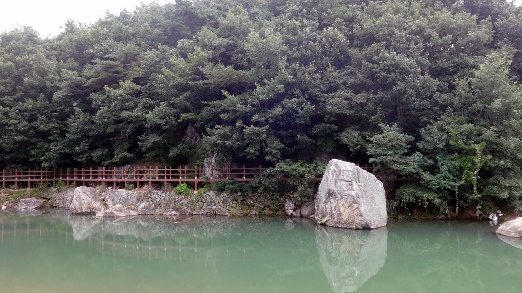 ▲ 용소(龍沼) 청계(경호강)가 북쪽으로 굽이쳐 흐르는 곳의 바위(용바위) 밑에 물이 깊어 푸르게 보이는 곳인데 옛날에 용이 있었다는 전설이 있으며 무당이 굿을 한 적도 있었다고 합니다. 용소의 절벽 아래로는 큰 굴이 있다고도 알려져 있습니다.
