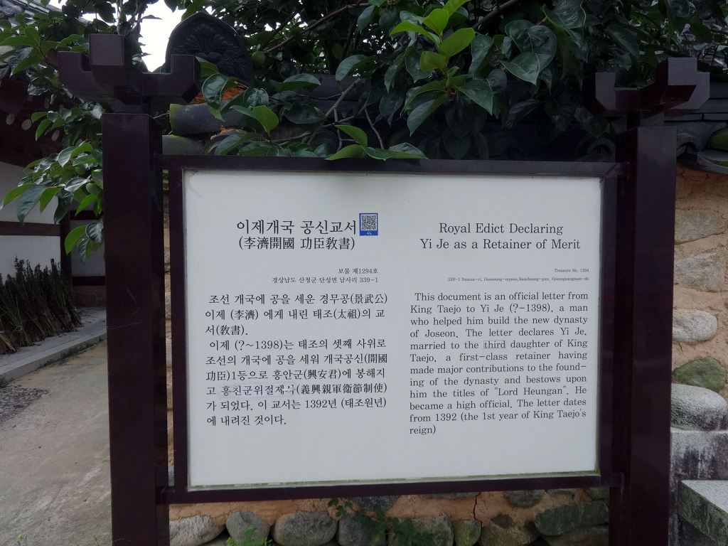 이제(李濟, 경무공,星州李氏) 이제는 고려 말 조선 초의 문신으로 시호는 경무(景武)입니다. 1352년(공민왕 1) 좌대언(左代言)이 되었고, 그 해 밀직제학(密直提學)으로 연저수종공신(燕邸隨從功臣) l등에 책록, 태조 이성계의 셋째딸 경순공주(慶順公主)와 결혼하였습니다. 1392년 전법판서(典法判書)로 정몽주(鄭夢周)를 죽이고 조선의 건국을 도와 개국공신 1등으로 홍안군(興安君)에 봉해졌으며 의흥친군위절제사(義興親軍衛節制使)가 되었습니다. 이듬해 우군절제사(右軍節制使)가 되었으나 1398년(태조 7) 제1차 왕자의 난 때 태종 이방원에게 살해되고 부인인 경순공주는 비구니가 되었습니다. 세종 때 신원(伸寃)되어 태조 묘정(廟庭)에 배향되었습니다. 태조 이성계에게서 받은 개국공신교서는 1999년 6월 19일 보물 제1294호로 지정되어 보호되고 있습니다. 수량은 1축이며, 유일하게 전해지고 있는 개국공신교서로 조선시대 최초의 공신 교서 형식을 알 수 있어 역사적·사료적 가치가 큰 보물입니다.