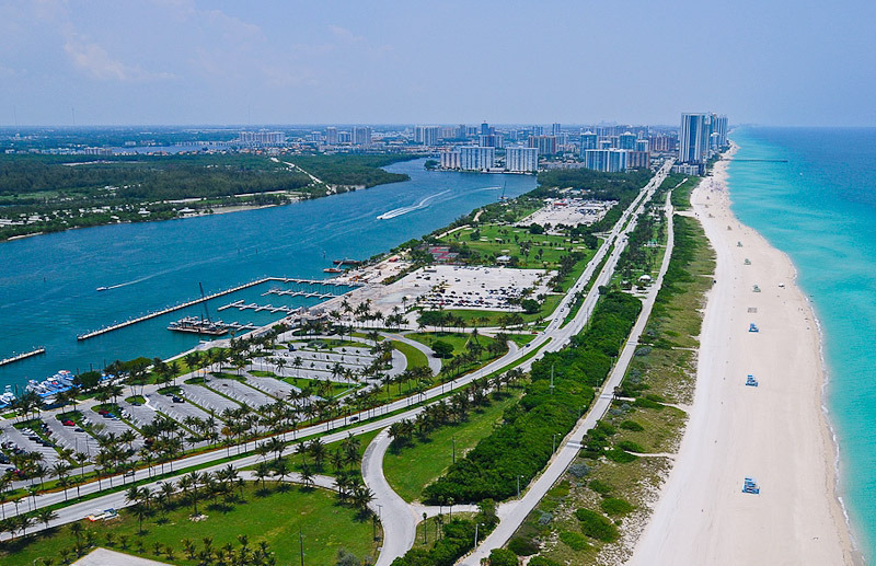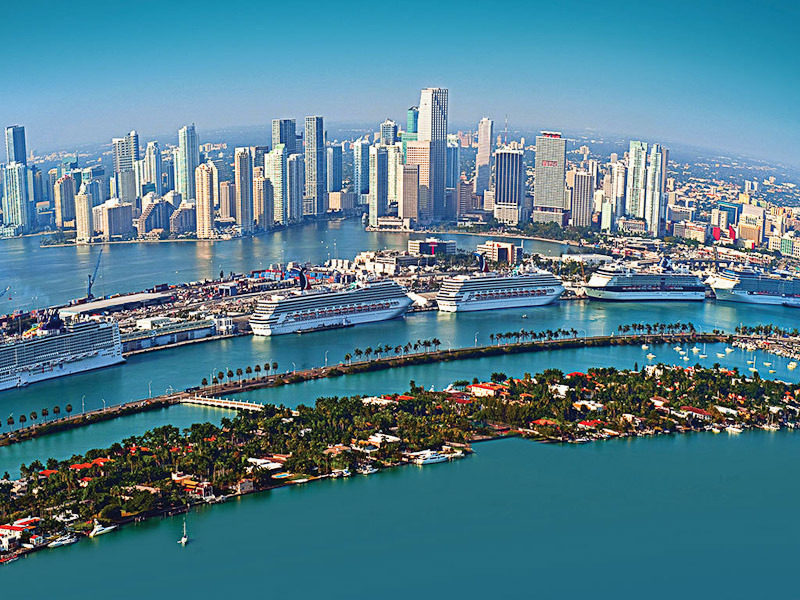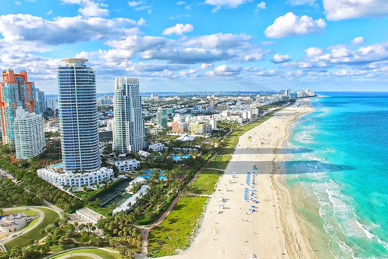 마이애미 비치는 20세기 초에 집중적으로 개발이 시작됐다. 부자들의 별장들이 속속 들어서고, 관광지화 되면서 해변을 따라 고층 빌딩이나 호텔들이 줄지어 세워졌다. 마이애미 도심까지 거리가 10마일 안팎으로 가깝고, 자유로운 분위기에 이름난 레스토랑들도 여럿 있어 가족단위로 찾는 사람들도 연중 적지 않은 곳이 마이애미 비치이다. 마이애미항은 미국 사람들의 로망인 캐라비안 크루즈의 출발지이기도 하다.