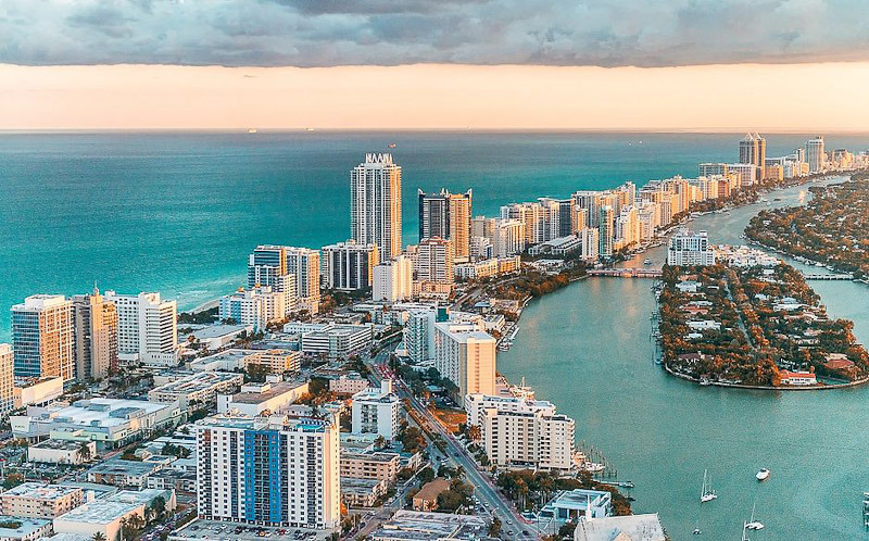 미국 플로리다주의 마이애미시와 마이애미 비치는 서로 다른 도시지만, 하나의 메트로 생활권으로서 마이애미시의 보석과도 같은 존재이다. 마이애미 비치는 미국의 유명한 도시들을 조금씩 섞어 놓은 것과 같은 느낌을 주면서도 자신만의 분위기를 자랑한다. 열대 해양성 기후와 풍광은 약간은 하와이의 비치를 닮은 것 같기도 하다. 그런가 하면 예술가들이 많고, 유대인 커뮤니티가 발달된 모습은 로스앤젤레스의 할리우드 일대와도 닮은 꼴이다.