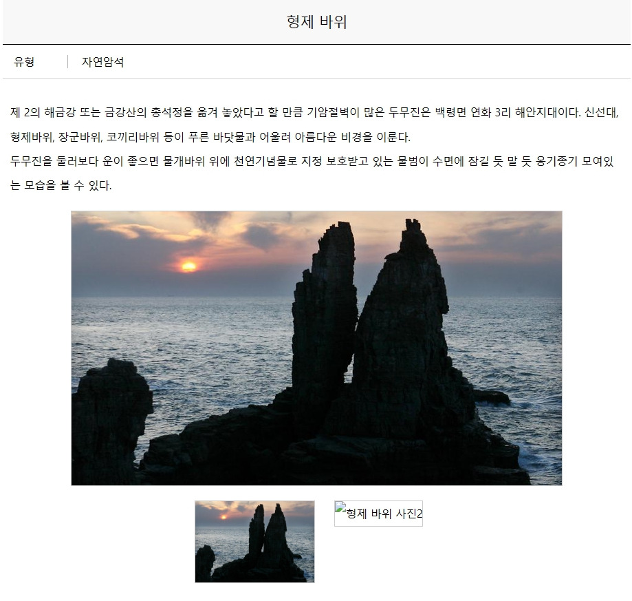 | 일 정 | -8시30분 인천항 출항 12시-대청도 도착 -점심식사 -서풍받이 트레킹(3km) 해넘이 전망대 -사탄동솔밭, 모래울해변 산책 -지두리전망대 트레킹 -저녁식사 겸 뒤풀이 농여해변일몰 자유시간 및 숙박(옥죽포) 둘째날 기상. 옥죽포해변 일출은 선택 및 아침산책 -아침식사 농여해변 트레킹(농여-고복바위-섬바지-미아동해변) -자유시간 점심식사후 백령도로 출발 용기원산(등대 해안, 천연동굴) 사곶 천연비행장(천연기념물391호) 콩돌해안(천연기념물392호) 용트림 바위(천안함사고현장), 남포리 습곡구조 조망 중화동 교회(백령기독교역사관) 저녁식사및 일몰 셋째날 -아침식사 심청각(심청전시관. 장산곶조망) 고봉포 사자바위 천안함 46인 용사위령탑 두무진(명승8호) 도보관광 : 통일 기원비 -12시30분 점심식사후 인천으로 출발 16시30분 도착 일정과 순서는 상황에 따라 변동될수 있습니다 | 준비물 | 신분증, 휴대폰 충전기 2박에 필요한 물품 |