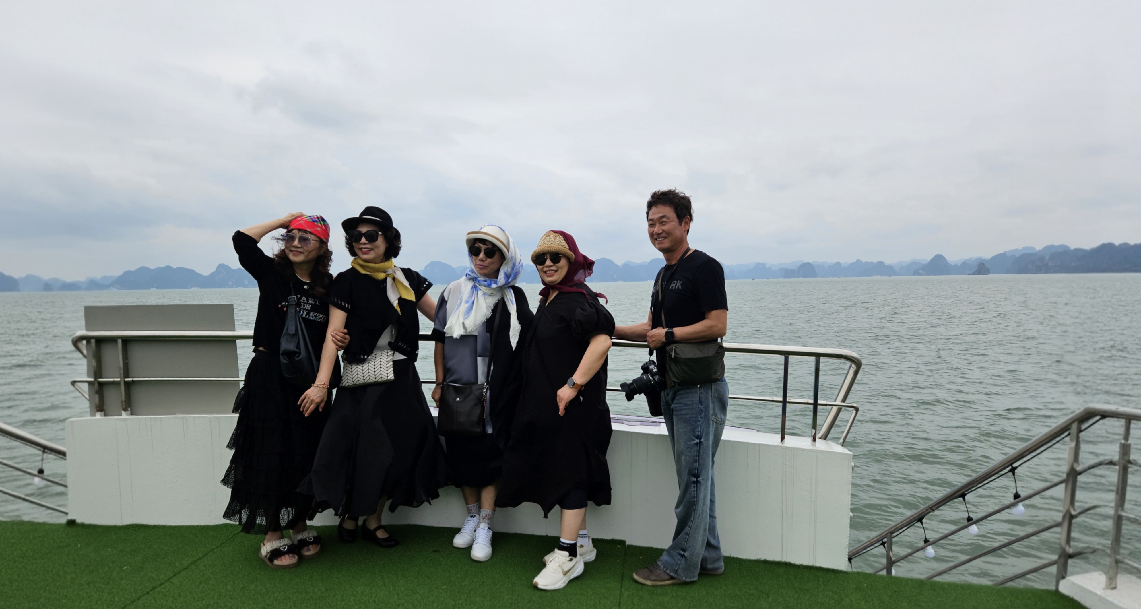 이란전쟁으로 인하여 해외일정 취소로 많이 힘드셨을터인데도 베트남 여행 현지가이드등 모든 일정에 공을 들인 것들이 느껴져 으싸으싸 한다고 여행나무 다니면서 사진을 첨으로 같이 찍으세요~~했는데 배에 승선한 사진찍사분이 넘 과한 포즈를 요구함에도 적당한 포즈로 찍힌 사진 공개합니당~~