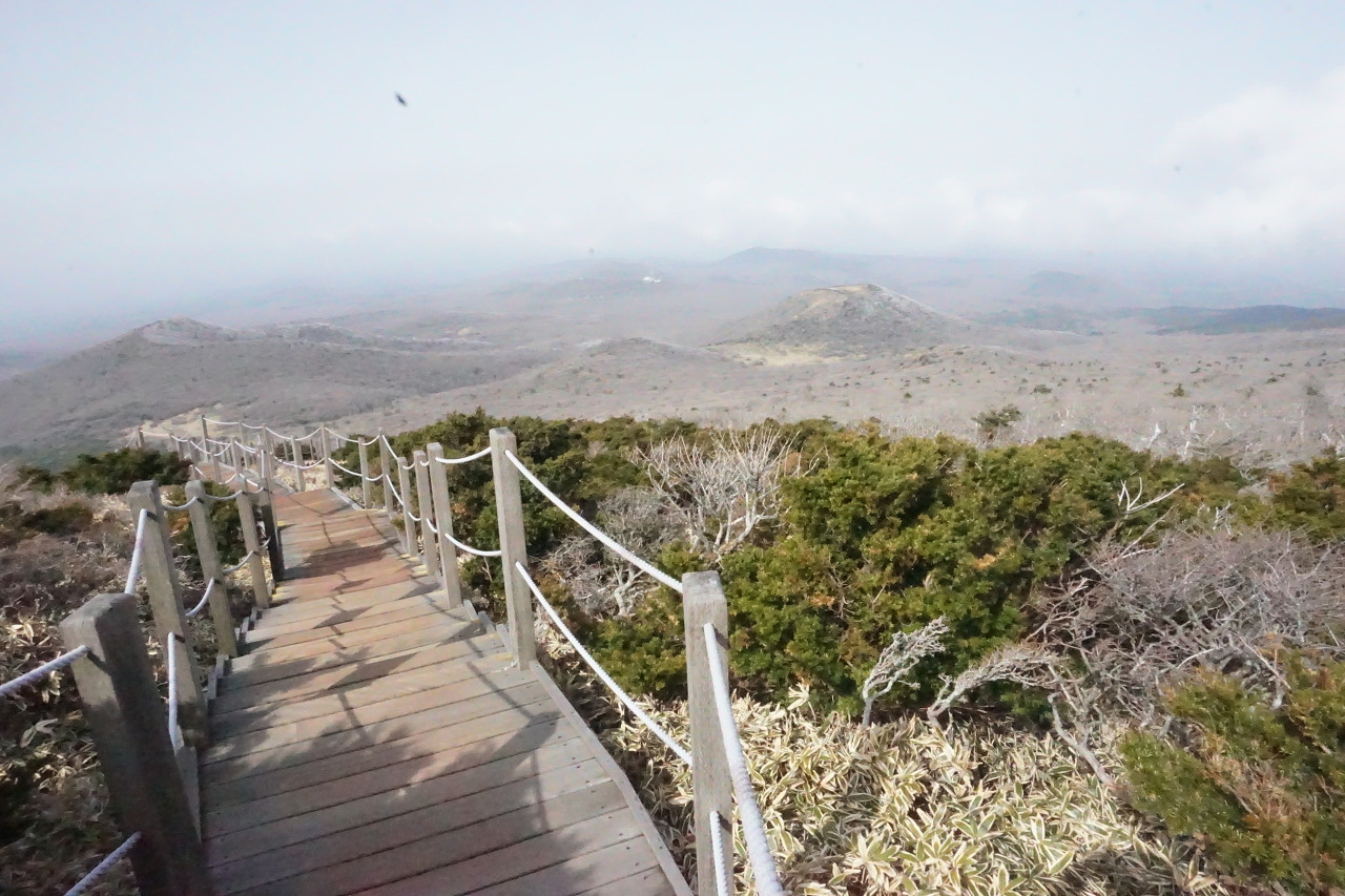 | 3) 영실코스의 영주십경(瀛州十景) (제주여행3박4일 셋째 날) 인터넷검색에서 읽었던 등산로입구가 아닌 성싶었지만 벌써 차는 떠나버렸다. 오늘 강풍 조심하라는 예보대로 차가운 바람이 매서울정도로 엄습해 왔다. 차도를 따라 한라숲길을 걷는다. 승용차만 가끔 지나칠 뿐 트레킹족이 없다. 인터넷 웹에서 영실등산로입구는 2.2km전방인 걸 확인한다. 겨드랑이 찢고 움 트려다 놀랜 새싹의 표정이 궁금해도 엿볼 기분이 싹 가셨다. 목에 건 디카를 준비한 게 그나마 다행이다. 한 시간을 정신없이 한파와 씨름했다. 아무도 없는 영실 들머리게이트를 통과한다. 바람의 포효가 팡파레인가! 데크계단은 숲을 뚫고 은근히 오르막길을 펼치다가 가파른 돌계단으로 바통을 넘긴다. 울창한 관목들은 희멀거니 영양실조에 걸린 꼴이다. 화산석에 뿌릴 내린 나무들이 한라산조릿대에 치어 앙상할 수밖에 없지 싶다. 그 앙상한 나지의 엉킴이 춤사위 같고 가지에 달라붙느라 앙탈하는 바람결이 아우성처럼 들린다. 병풍바위 골이 가까워지자 된비알 오름길은 급살 맞다. 주상절리 병풍바위는 영실코스의 압권인데 가까이 다가갈 수가 없으니 그게 한이로다. 그나저나 미친바람은 언제쯤 잠잠해 질려나? 방풍막이 쉼터도 없는 된비알코스2km는 죽음의 길이라고 어느 여학생이 투덜댄다. 영실코스의 매력은 해발1,400∼1,600m지점에서 하늘로 치솟는 거대한 기암괴석들이 병풍처럼 늘어 선 영주십경(瀛州十景)의 하나다. 그 천태만상의 기암들을 옛부터 '오백나한', 또는 '오백장군' 이라고도 불리었다. 병풍바위고개를 넘으면 평탄한 데크 길이 구불구불 관목 숲을 헤집는다. 하얀 뼈대의 몸짱 콘테스트라도 벌리는지 구상나무들은 죄다 깨 벗었다. 언젠가 매스컴에서 한라산구상나무가 고사목이 되간다는 소식을 접해 정말일까 싶어 안쓰럽다. 윗세오름을 향하는 광활한 툰드라(?)지역에 활주로 같은 등산로가 뱀처럼 한라산 화구벽(火口壁)을 기어오른다. 그 길이 그리 푸근하고 평안해보여 저절로 발길을 옮기게 된다. 정오에 윗세오름에 섰다. 어디서 언제 나타났던지 휴게실엔 산님들이 띄엄띄엄 자릴 채웠다. 한라텃새가 되버린 까마귀 한 쌍이 노려보고 있다. 광풍에도 꿈쩍 않는 놈들은 산님들을 우습게 보는지도 모른다. 저만치에 시꺼먼 한라산이 커다란 질그릇 엎어 놓은 모습으로 다가서고 어리목 쪽의 툰드라엔 오름 능선이 리드미컬하다. 산에 올라서면 자연의 위대함에 겸손해지면서 철학자가 된다고, 삶 자체가 하나의 산이라고 편지를 쓴 다니엘 린데만의 글이 떠오른다. “지구야, 산에 오르는 걸 ‘힐링’이라고도 불러. 산에 올라가면 철학적인 생각을 하게 되는 것 같아. 자연은 정말 위대하구나. 산은 참 높기도 하다. 그에 비해 우리인간은 너무 보잘 것 없는 존재야. 어쩌면 삶 자체가 하나의 산이 아닐까? 정상에 올라 주변을 돌아보고 ---- 맞아, 삶은 하나의 산이야. 그러니까 우린 산을 지켜야만 하고!” 독일출신 방송인 다니엘 린데만의 <지구에게 쓴 편지> 중 일부를 모닝 캄(MORNING CALM)에서 옮겼다.미친바람에 맞서 연탄성을 토한 아내와 둘째가 대견해 더욱 보람 찬 한라산등정이 됐다. 동네자락길만 다녔기에 내심 걱정이 됐던 모녀였다. 내일은 어리목코스에 도전하겠단다. 좋구말구! 2021. 03. 21 출처: https://pepuppy.tistory.com/1050 [깡 쌤의 내려놓고 가는 길] |