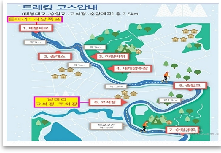 ※ 산 행 코 스 : 드리니매표소→드리니스카이전망대→한탄강스타이전망대→순담매표소(3.6km)